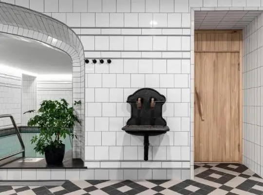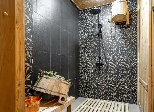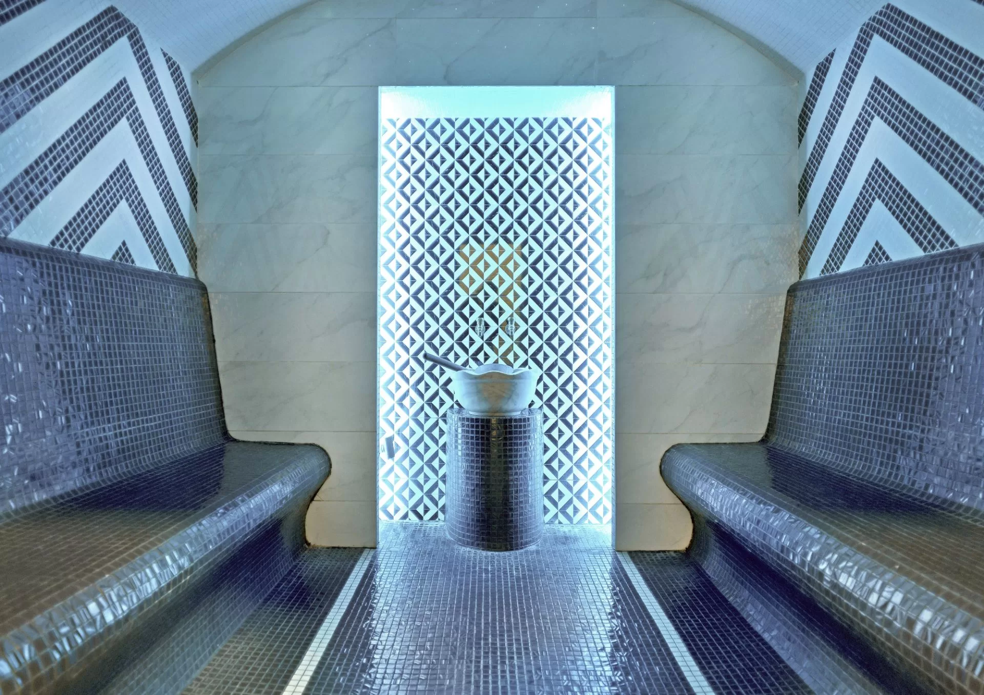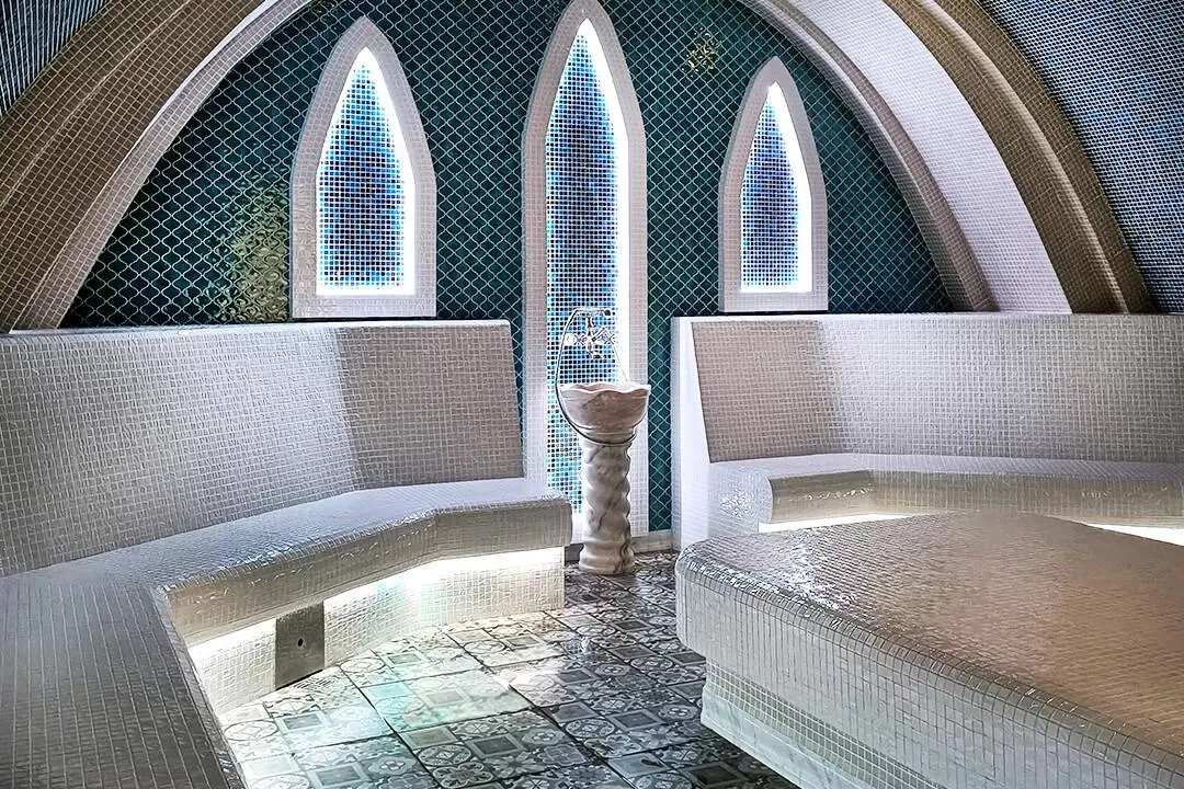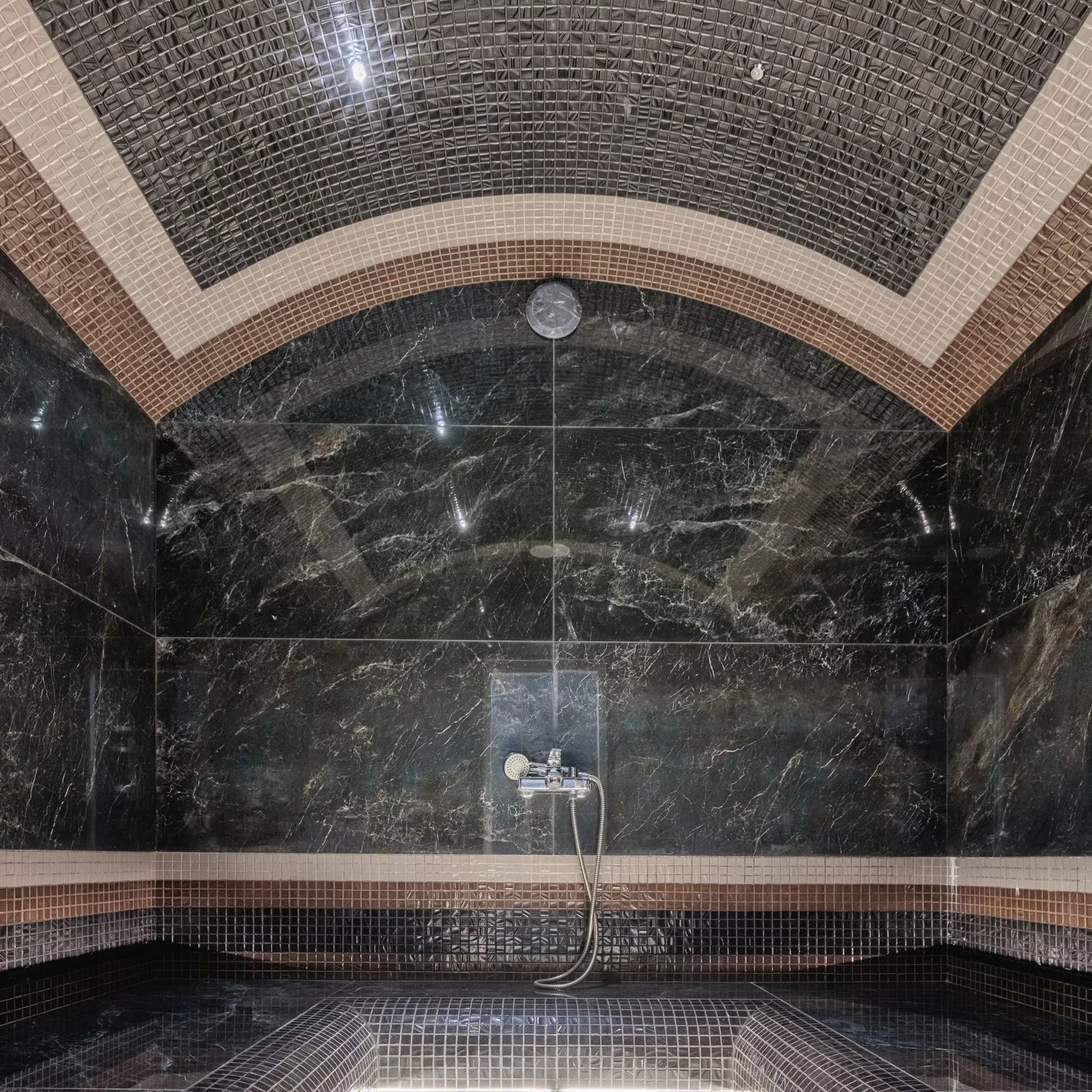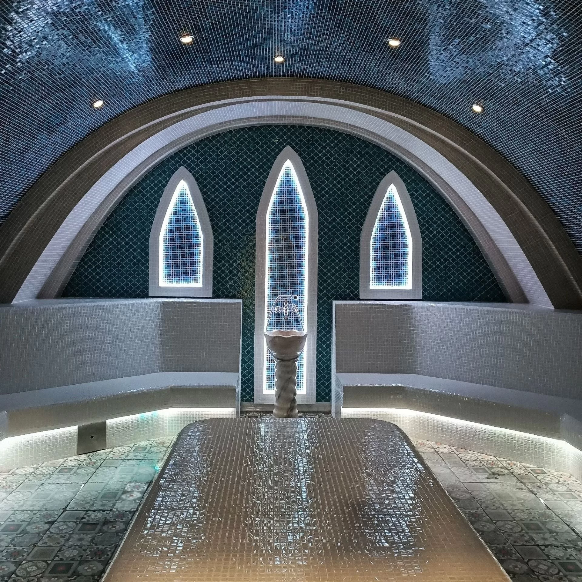 Пар подается не от печи, а из чанов с кипящей водой или из парогенераторов, которые используются для устройства современных домашних хаммамов. В следствии этого туман из влажного пара заполняет помещение, обволакивая все, что находится внутри. Именно этот фактор влияет на одно из главных отличий хаммамов от бань и саун: в их отделке совсем не используется дерево, которое не способно выдержать столь агрессивную среду. Еще одна отличительная особенность — все поверхности, кроме потолка, в хаммамах подогреваются. А чтобы конденсат не капал сверху, потолок выполняют в форме высокого купола. Вода стекает сверху вниз по стенам, не нарушая отдых посетителей. Именно поэтому все поверхности в восточной бане — стены, потолок, каменные лежаки и пол — отделывают исключительно керамикой и натуральным камнем.