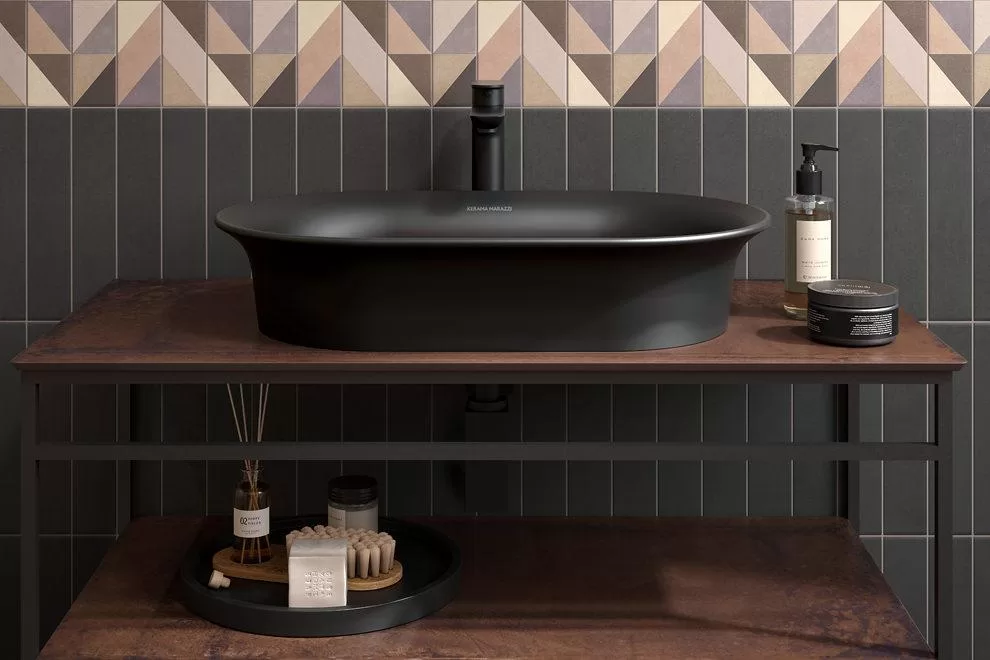 Так же как белый, чёрный относится к цветам, которые будут уместны в любой цветовой палитре. Конечно, очень важны качество чёрного цвета, его глубина и насыщенность. Чёрные раковины KERAMA MARAZZI в этом смысле соответствуют наиболее строгим требованиям. Это не только видно, но и чувствуется на ощупь: матовая текстурированная поверхность изделий усиливает тактильное восприятие.