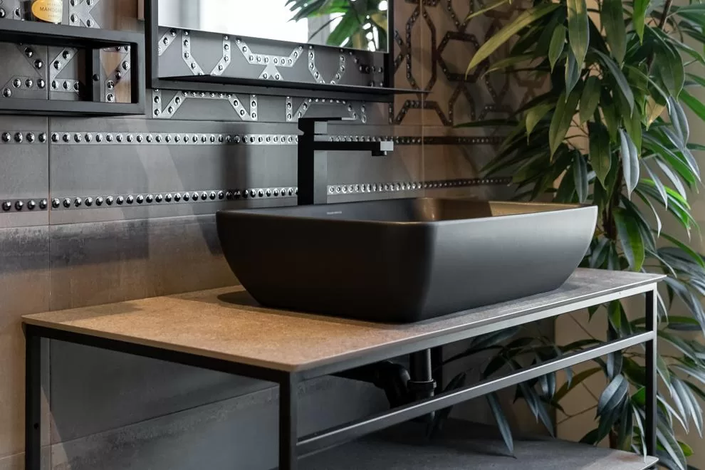 Когда в ванной появляется чёрная раковина, естественным продолжением этого становится чёрный смеситель. Особенно уместно этот дуэт смотрится в брутальных лофтовых интерьерах. В коллекциях смесителей KERAMA MARAZZI чёрный матовый цвет представлен смесителями Futura, кубические формы которых полностью оправдывают такое название, а также одной из моделей серии Ole. В чёрном исполнении доступен и настенный смеситель LINEA – отличное решение для раковины CONO и раковин Artbasins.