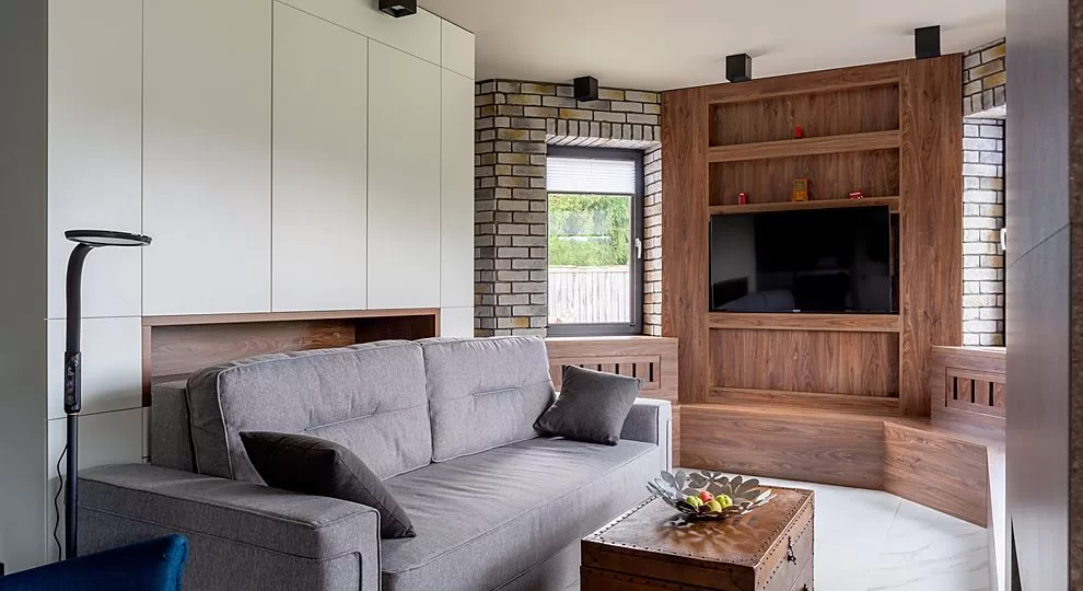«Монто Тиберио» — изумительное по своей точности воспроизведение белоснежного итальянского мрамора CALACATTA с характерным рисунком серых прожилок. Количество вариантов графики создает полное ощущение, что в отделке использовались слэбы натурального минерала. Белый «мрамор» сделал помещение светлым и легким, одновременно привнеся безопасность и долговечность, ведь керамический гранит не боится ни воды, ни огня, ни мороза. Он надежно прячет трубы водяного отопления, он не позволяет разгореться искрам, выпавшим из топки камина, а также не выцветает и не теряет своего первоначального вида даже годы спустя.