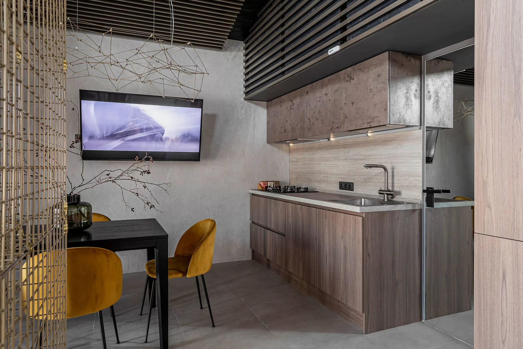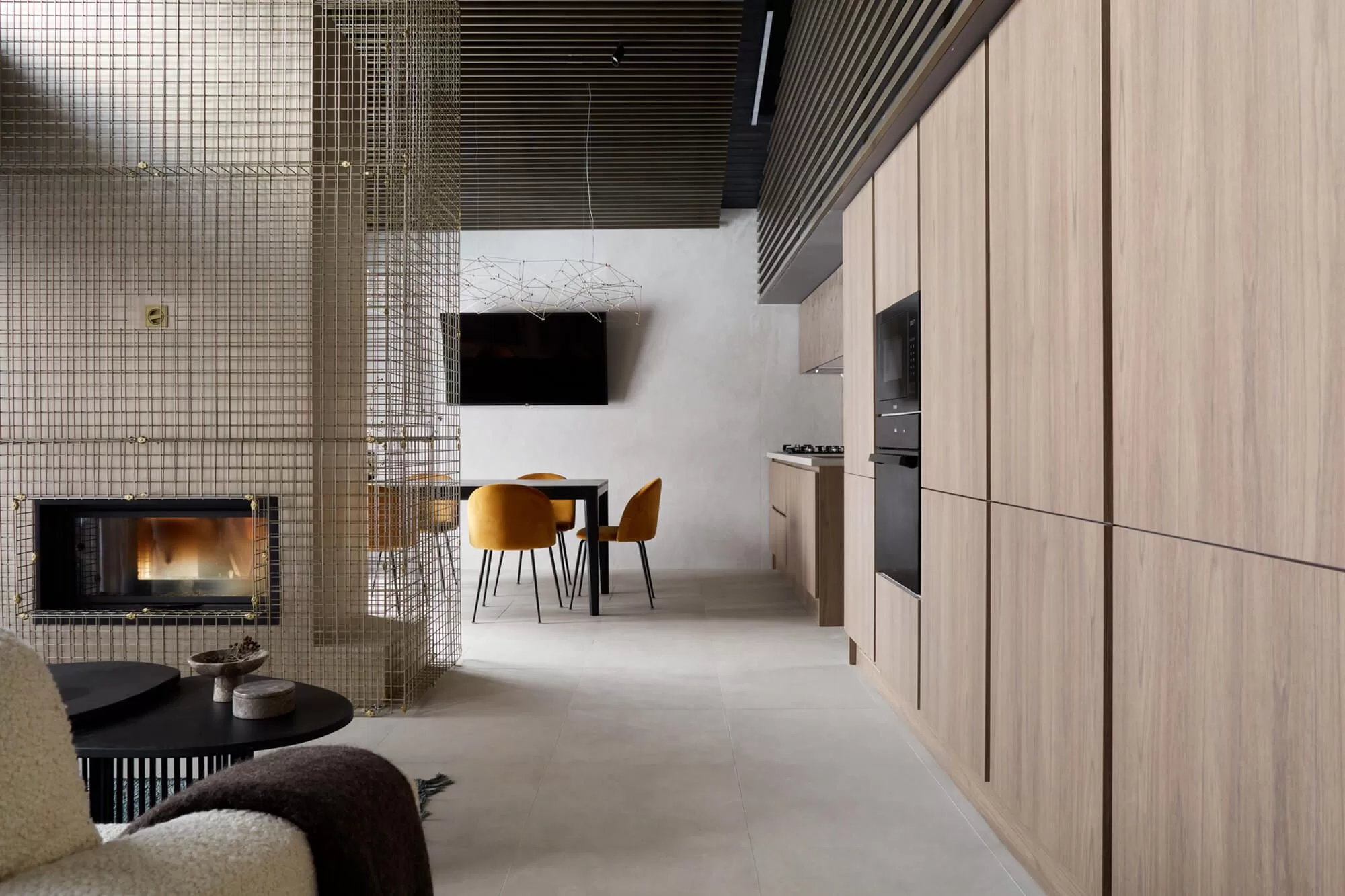 «Дачный ответ». Шале в стиле лофт с золотым камином