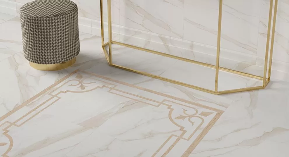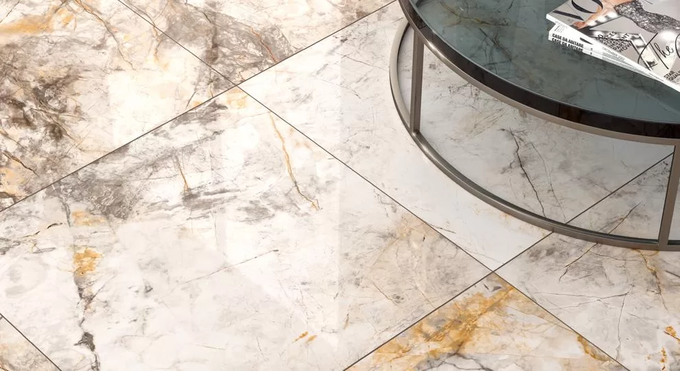 В серии «Монте Тиберио» также представлен керамический гранит с рисунком, характерным для нежно-белого мрамора «Калакатта Голд». Наряду с привычными серыми прожилками в этой разновидности керамического мрамора присутствуют золотисто-желтые вкрапления. Такой материал широко используется для декоративной отделки интерьеров в теплой цветовой гамме.