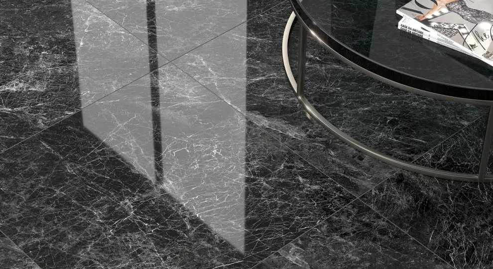 На другом цветовом полюсе — черный «коллега» светлого мрамора, пользующийся не меньшей любовью у ценителей стильных интерьеров. В серии «Греппи» KERAMA MARAZZI представила превосходное прочтение мрамора «Сахара Нуар», исчерченного изящными прожилками, в сверхкрупном формате 40×120. Кстати, в серии представлена и текстура белого мрамора. Сочетая оба цвета, в интерьер можно ввести выразительный контраст.