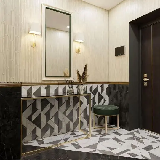 - акцент на вещах, обладающих уникальностью. На первый план в обстановке зачастую выходят предметы, хранящие семейную историю или сделанные по индивидуальному заказу. Это может быть и антикварная мебель, и авторские интерьерные объекты, для создания которых в том числе использованы архивные фото, вырезки, фрагменты керамической плитки.