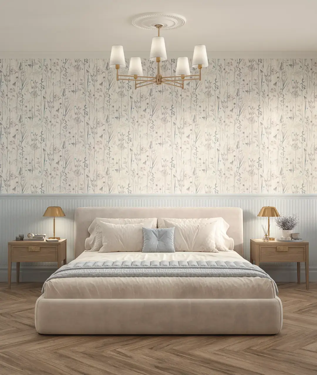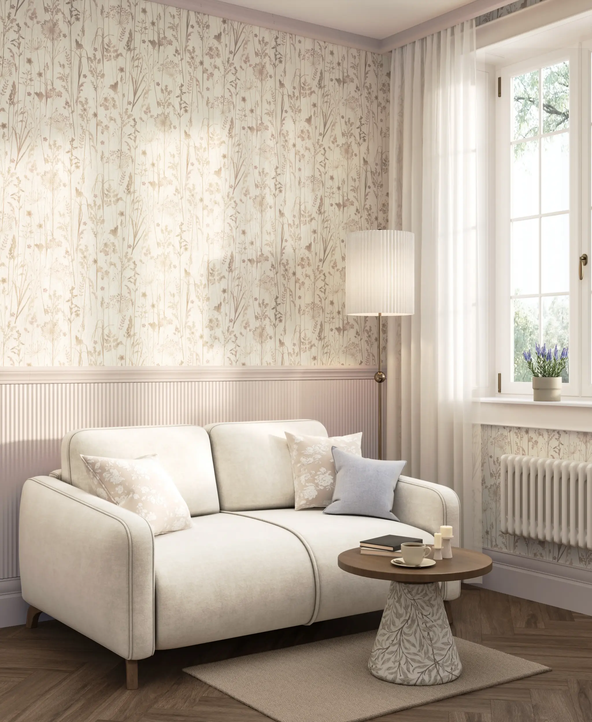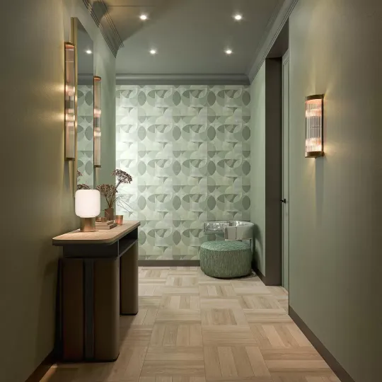 «Если вы планируете часто обновлять интерьер и менять его составляющие, однотонные обои дадут свободу в цветовых и стилистических сочетаниях», — комментирует Ольга Павлова, начальник отдела дизайна департамента продукции KERAMA MARRAZZI. — «Совсем отказываться от принта не обязательно: лёгкие, деликатные узоры смотрятся интересно, при этом сохраняя визуальную чистоту дизайна. Если обстановка ближе к классике или современному прочтению традиционных стилей, можно использовать более декоративные решения. Естественный выбор для такого пространства — обои с выразительным рисунком: цветочным, орнаментальным, абстрактным. При этом лучше всего использовать их дозированно — например, на одной стене или в небольшой акцентной зоне».
