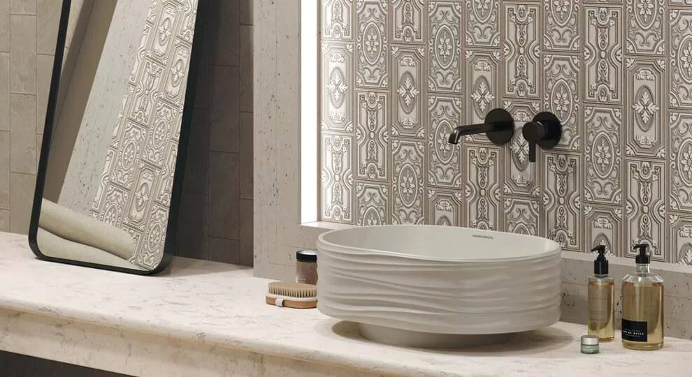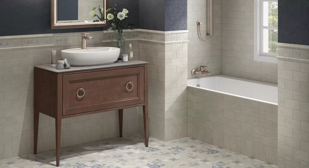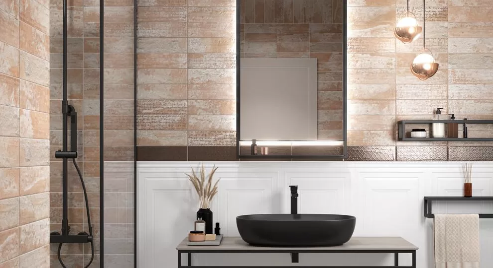 Настенные мини-форматы с соотношением сторон 1:2 представлены сериями «Сиена» 7,4х15 и «Пьяцца» 9,9х20 — с текстурой камня и бетона, идеально подходящими для классических стилей. Кстати, для обоих серий предусмотрен координированный пол с декорами, что делает серии готовым решением для различных помещений.