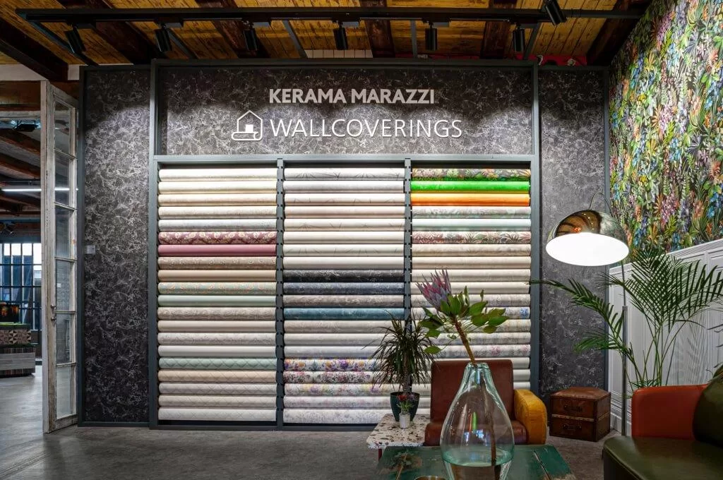 Завершающий, но далеко не последний по значимости раздел выставки – фирменные обои KERAMA MARAZZI с авторским дизайном. Направление обоев на флизелиновой основе компания начала активно развивать в прошлом году, и 2021-й уже принёс целый каталог новых стильных решений. Среди вариантов дизайна есть геометрия и цветочные мотивы, классические узоры и современные принты, выполненные на уровне лучших итальянских фабрик. Некоторые серии скоординированы с настенной плиткой, другие выполнены как полностью самостоятельное отделочное решение.