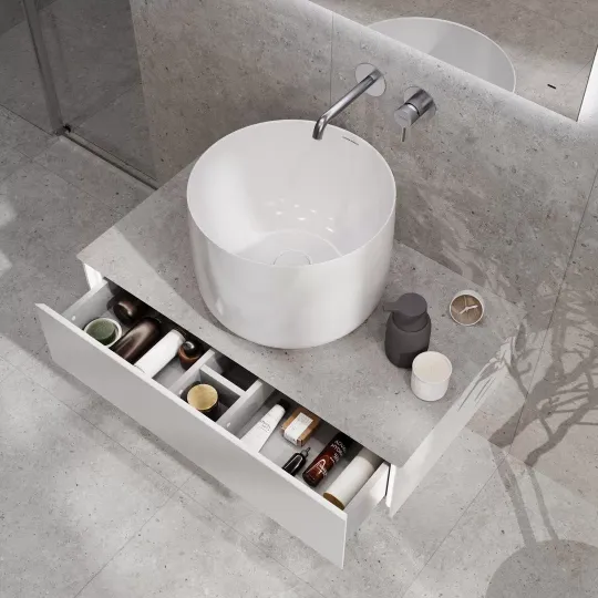 КругКруглая раковина ассоциируется с целостностью и уютом: она «сглаживает» прямые линии и делает интерьер более гармоничным. Накладной вариант, установленный на тумбу со столешницей, выглядит вневременной классикой. Так можно сказать о моделях