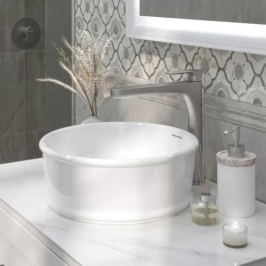 Среди круглых раковин KERAMA MARAZZI легко найти вариант, идеально подходящий для конкретного стиля. Например, атмосферу восточной сказки поддержит раковина «Сафи»: её контуры задают изящная ножка и широкая вместительная чаша, вдохновлённая формой марокканских фонтанчиков.