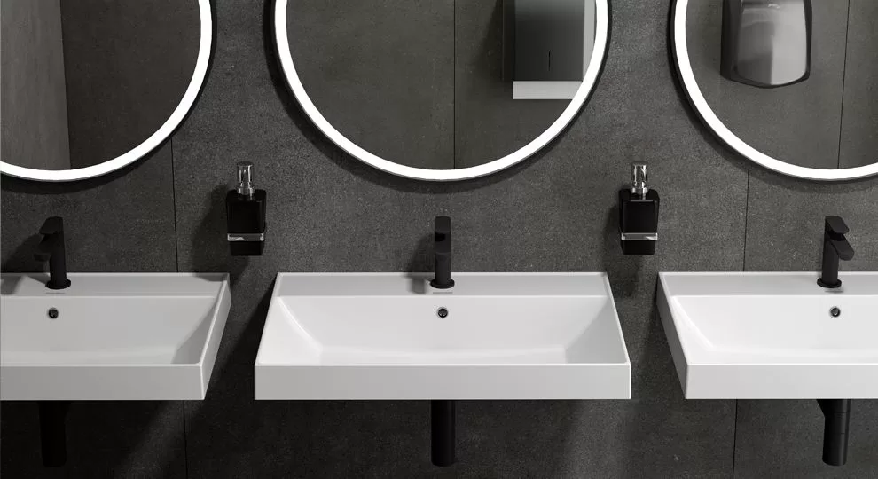 Подвесную раковину в интерьере можно поддержать одним из