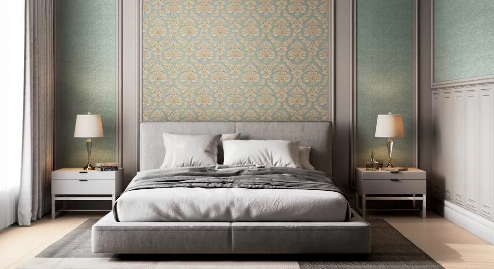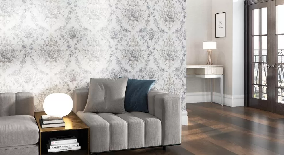 Для мотива и фона использованы нежные цвета, отлично раскрывающие природную красоту узора. Особенно явно классический орнамент выражен в мотиве. В фоновых обоях рисунок дан в приглушенном варианте, и такое визуальное «эхо» рядом с основным, более контрастным узором будет смотреться очень стильно.