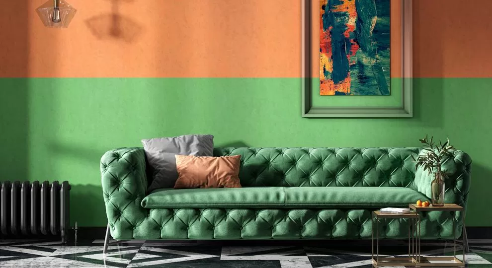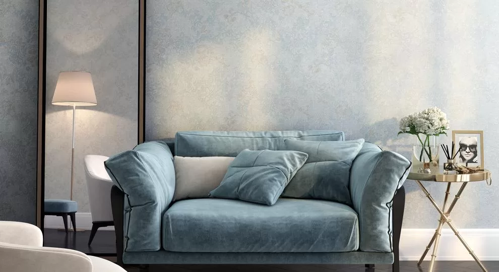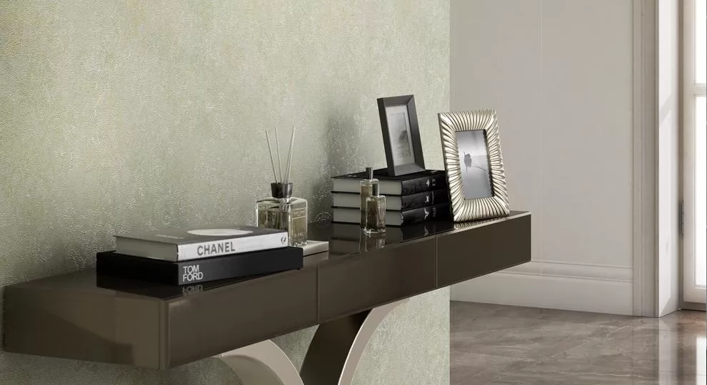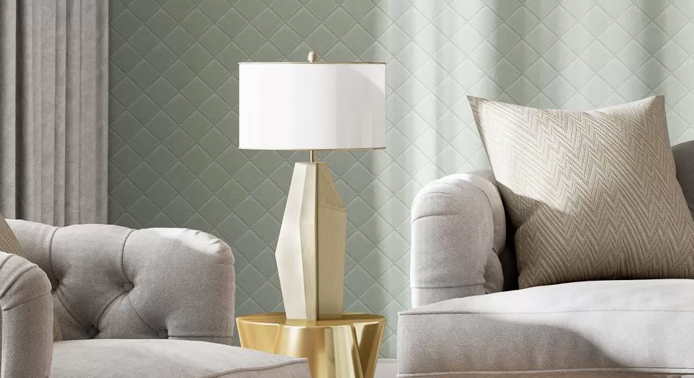 С такими мотивами образуют отличную пару фоновые обои в двух исполнениях. Первое воспроизводит структуру капитоне, уместную в классическом и современном дизайне. Ещё один вариант фона — обои с мелкой текстурой благородного твида, в нескольких оттенках.
