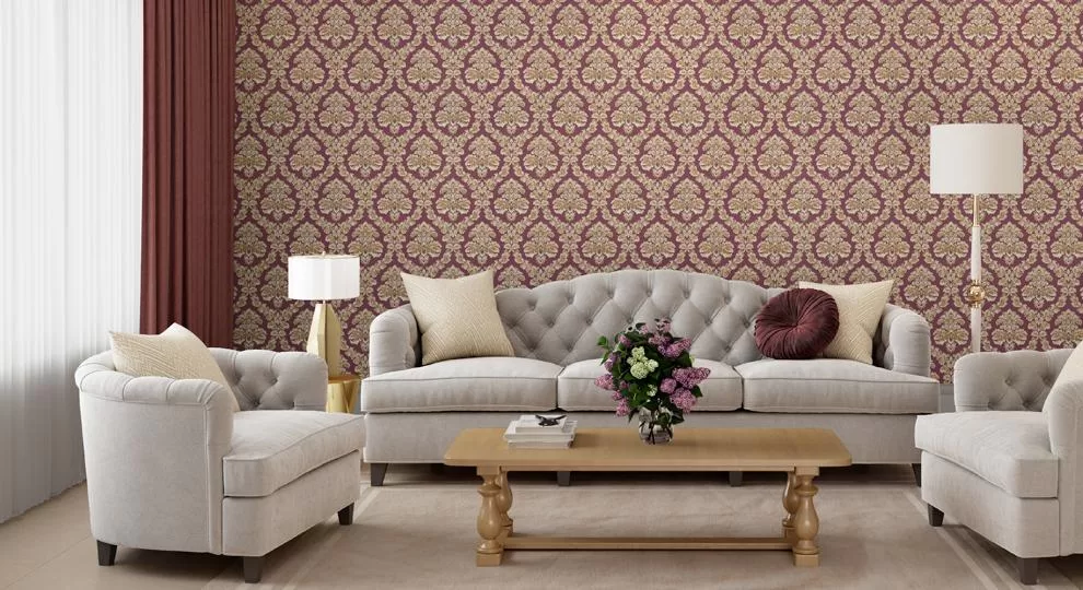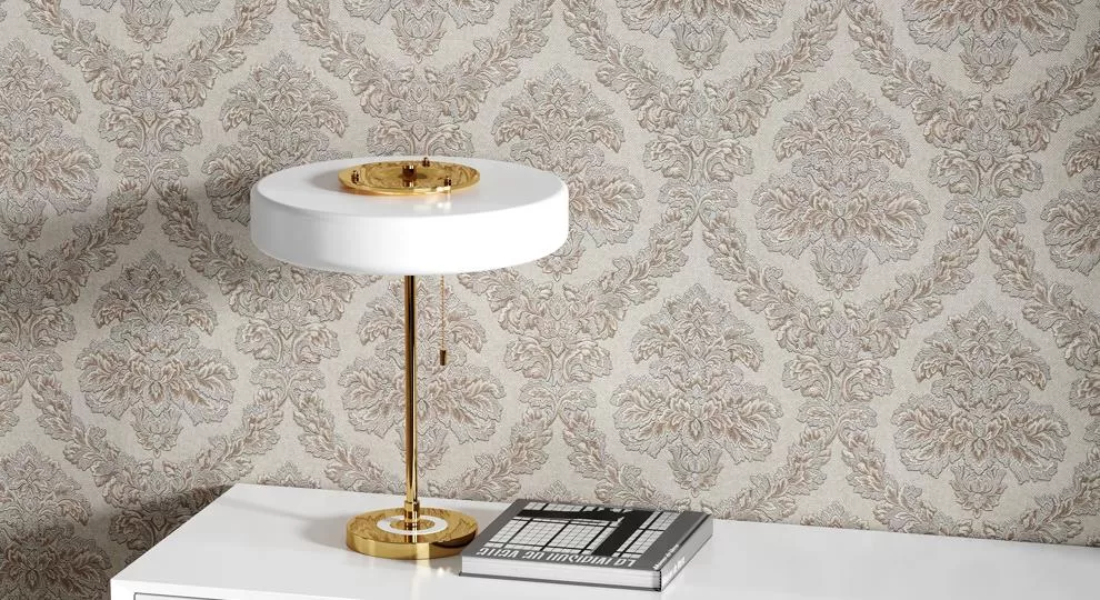 Природный дизайн — это не только южный колорит тропиков, но и вполне классические вариации, по-своему выразительные в части цвета и его насыщенности. В обоях «Палаццо» использован знаменитый дамасский узор с крупными цветами. Богатое тиснение придаёт им объём, на поверхности сверкают золотые блики: это невольно напоминает о красоте дворцовых покоев.