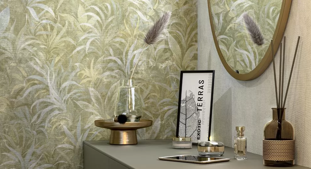 Природные мотивы и яркие живые краски — та среда, в которую так и хочется окунуться, особенно когда возможность самим отправиться в дальние страны сильно ограничена. Раз мы не можем поехать за тропическим настроением, самое время впустить его в наш дом вместе с новыми обоями! В том числе с серией «Экзотика», где причудливая листва словно нарисована пастельными мелками на холсте с деликатным тиснением.