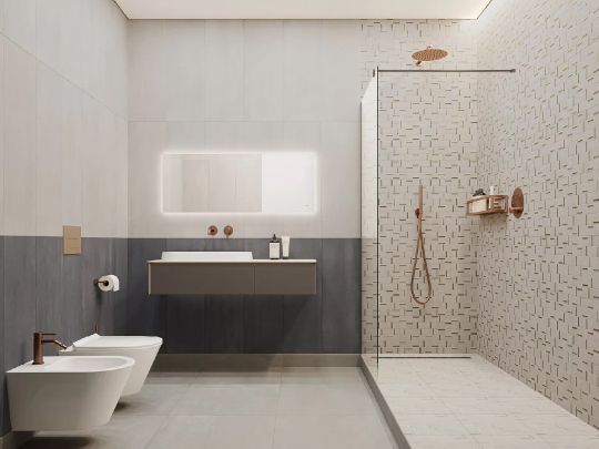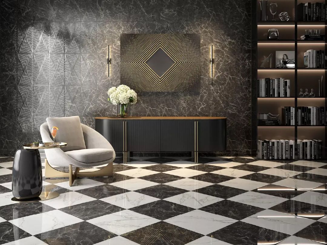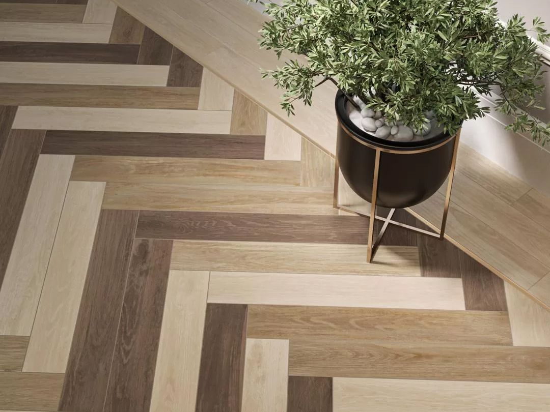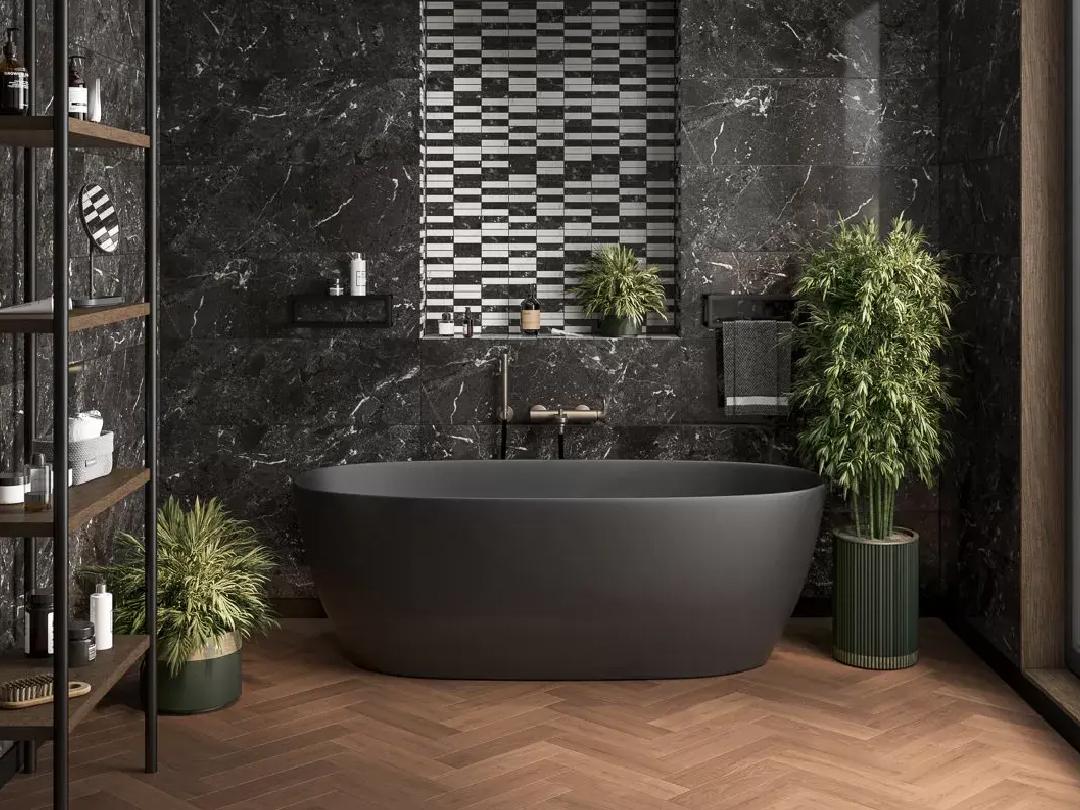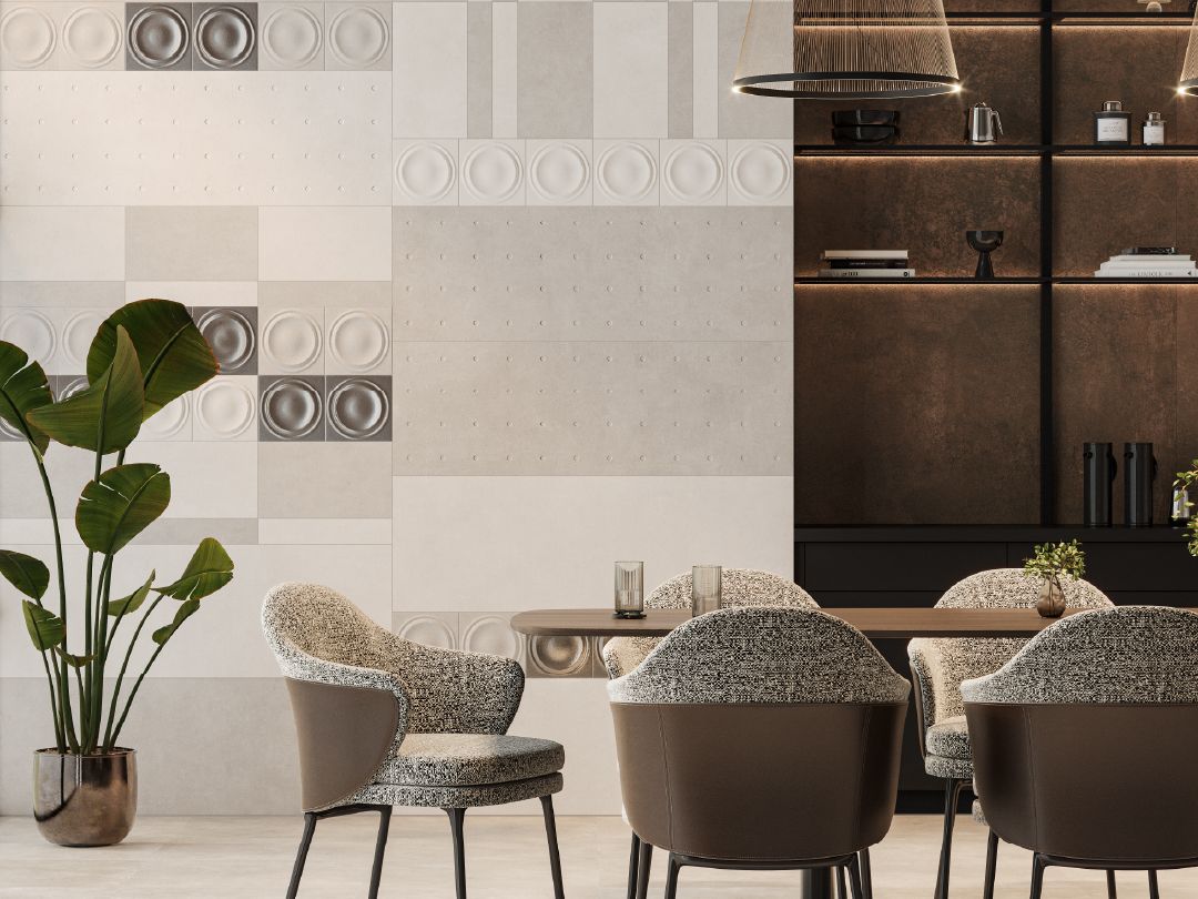 У каждой интерьерной зоны есть свои задачи, которые можно решить с помощью керамической раскладки. На полу она задаёт ритм и направление линий, а на стенах помогает скорректировать пропорции комнаты, визуально «поднимая» потолок или расширяя пространство. В санузле нестандартные схемы позволяют выделить зону душевой, оформить нишу или стену вокруг зеркала.