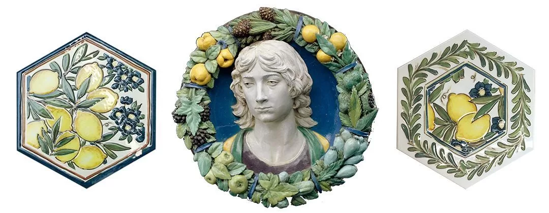 Говоря о декоративных традициях региона, нельзя не вспомнить майоличные работы Луки делла Роббиа (1399–1482), которого многие в Италии называют создателем глазурованной расписной керамики. В своих работах флорентийский мастер, изначально завоевавший славу как скульптор, искусно использовал рельефные образы. Так майолика получила новое измерение и чёткую структуру: она прослеживается и в керамических декорах коллекции