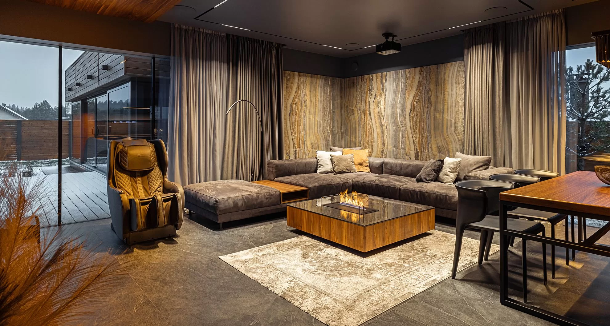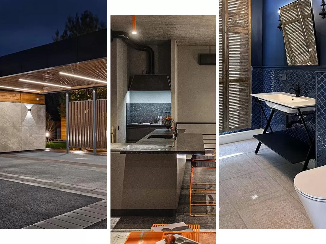 «Карбон». А вот второй этаж задаёт совсем другое настроение и раскрывает личность владельца гаража с другой стороны. Он не только поклонник быстрой езды, но и любитель уютных посиделок с друзьями в обстановке с просторным диваном, зоной ТВ и функциональной кухней, оборудованной грилем и барной стойкой.