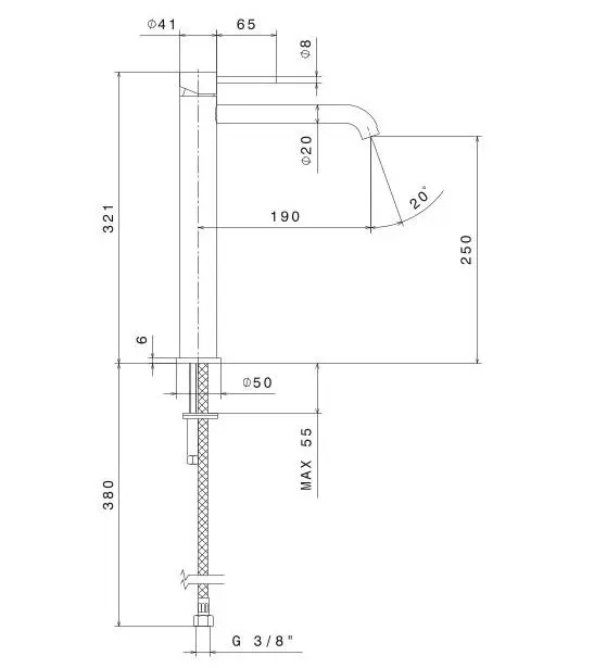 Высокий однорычажный смеситель выполнен из нержавеющей стали AISI 316: этот металл обладает особой устойчивостью к механическим воздействиям, гипоаллергенен, не подвержен коррозии. Дизайн изделия отличается лаконичностью и в то же время отвечает последним тенденциям дизайна. Смеситель подходит для установки на столешницу для использования с накладными раковинами.