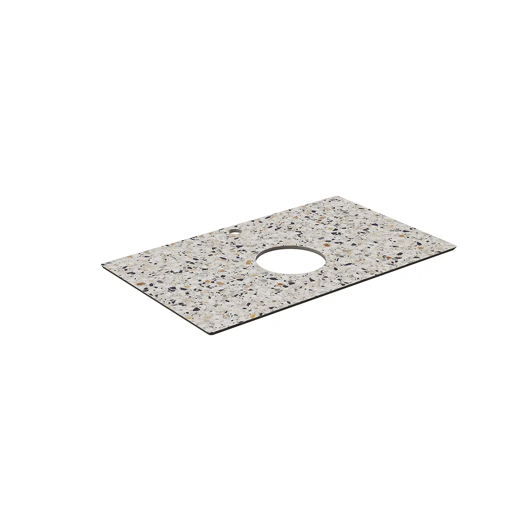 Столешница для тумб Plaza Modern и Plaza Next шириной 80 см выполнена из светлого керамогранита «Бричиола». Подходит для использования со следующими накладными раковинами: PLAZA, CIRCO, CANALETTO, а также раковинами линейки ArtBasins (Sabbia, Vento, Conchiglia) при установке накладным способом.