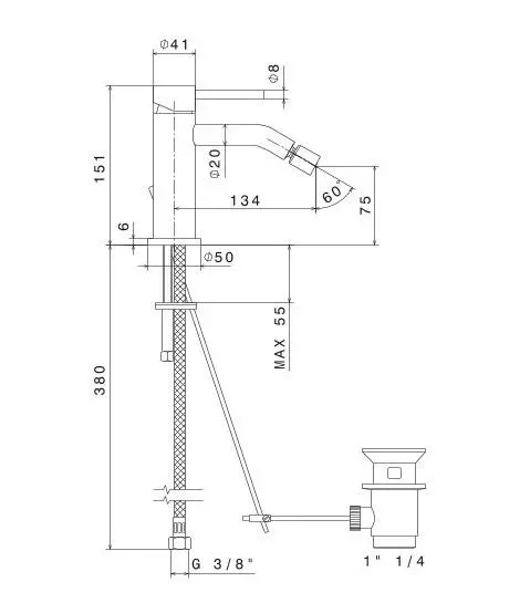 Смеситель для биде ETERNA c донным клапаном, нержавеющая сталь