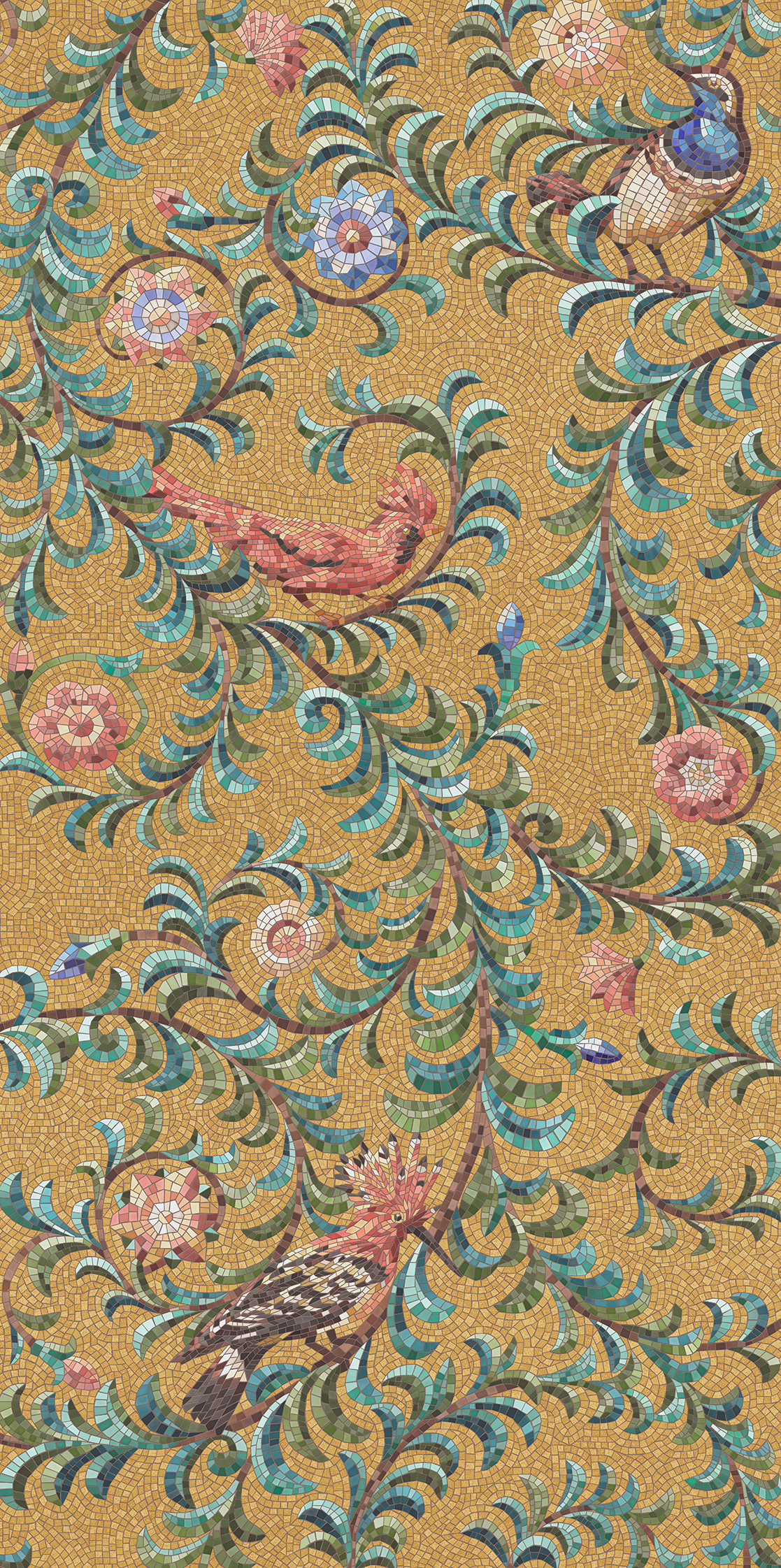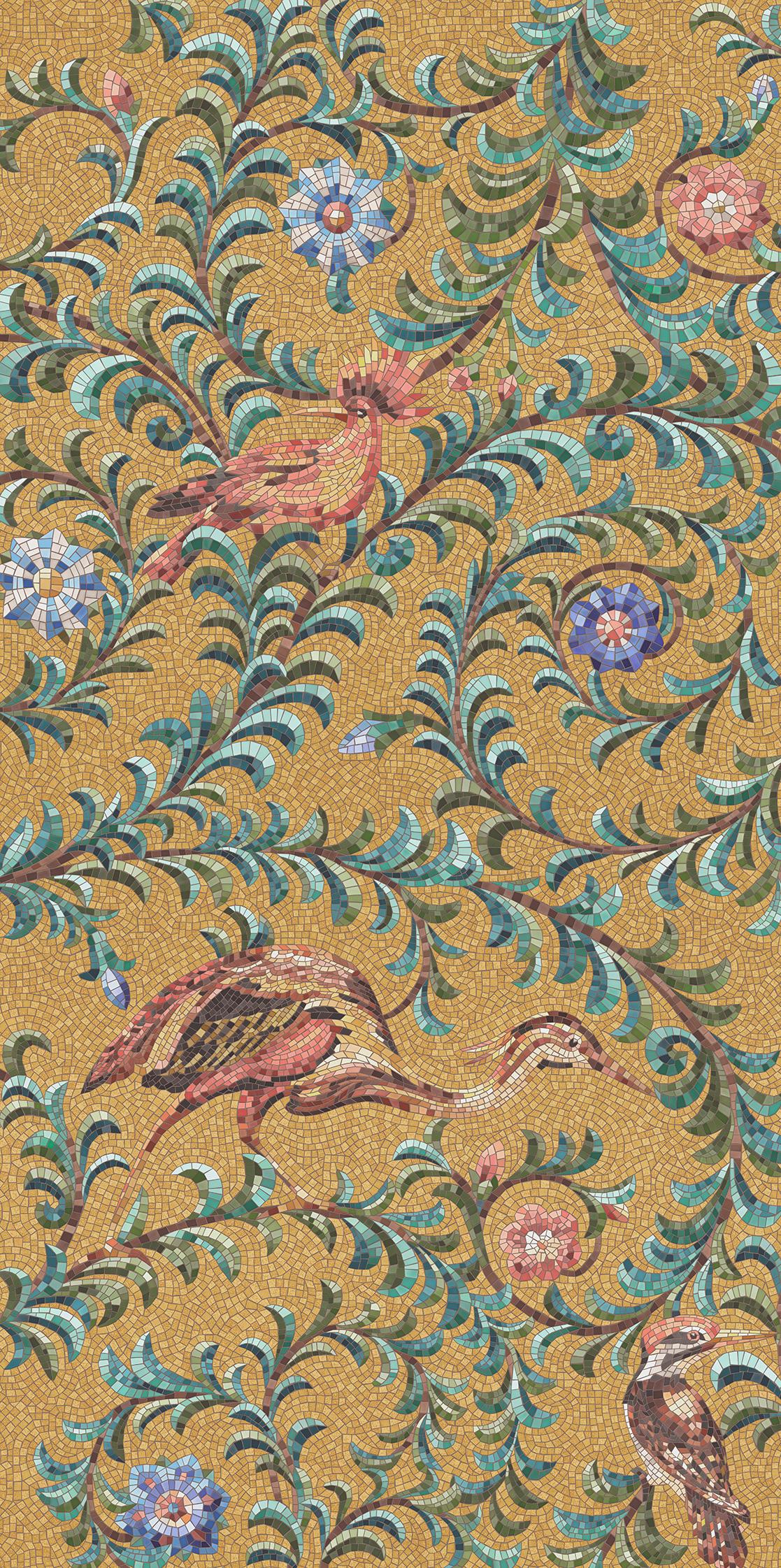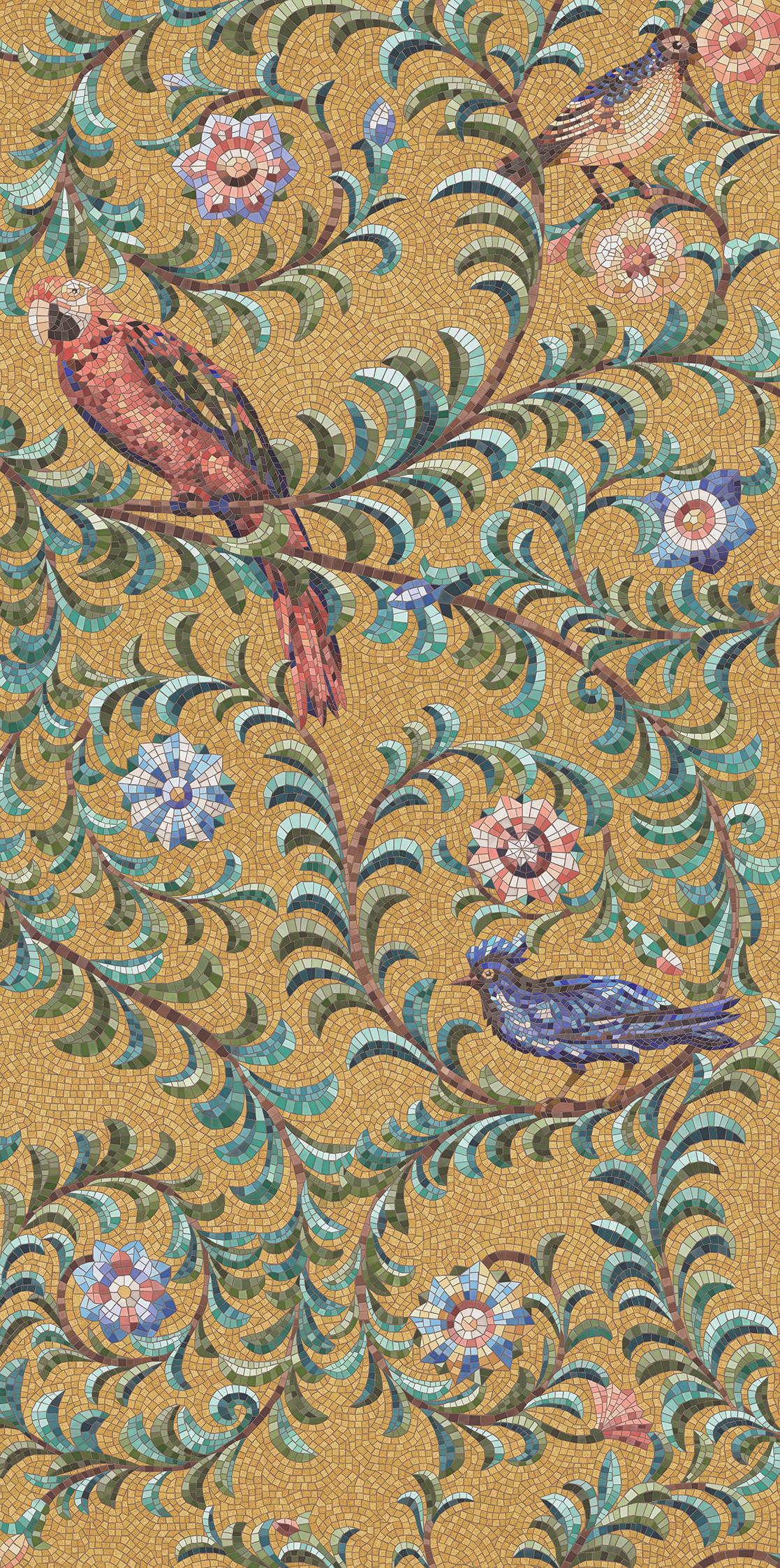 Панно Райский сад золотой матовый обрезной (из 3-х частей 60x119,5x0,9) 180x119,5x0,9