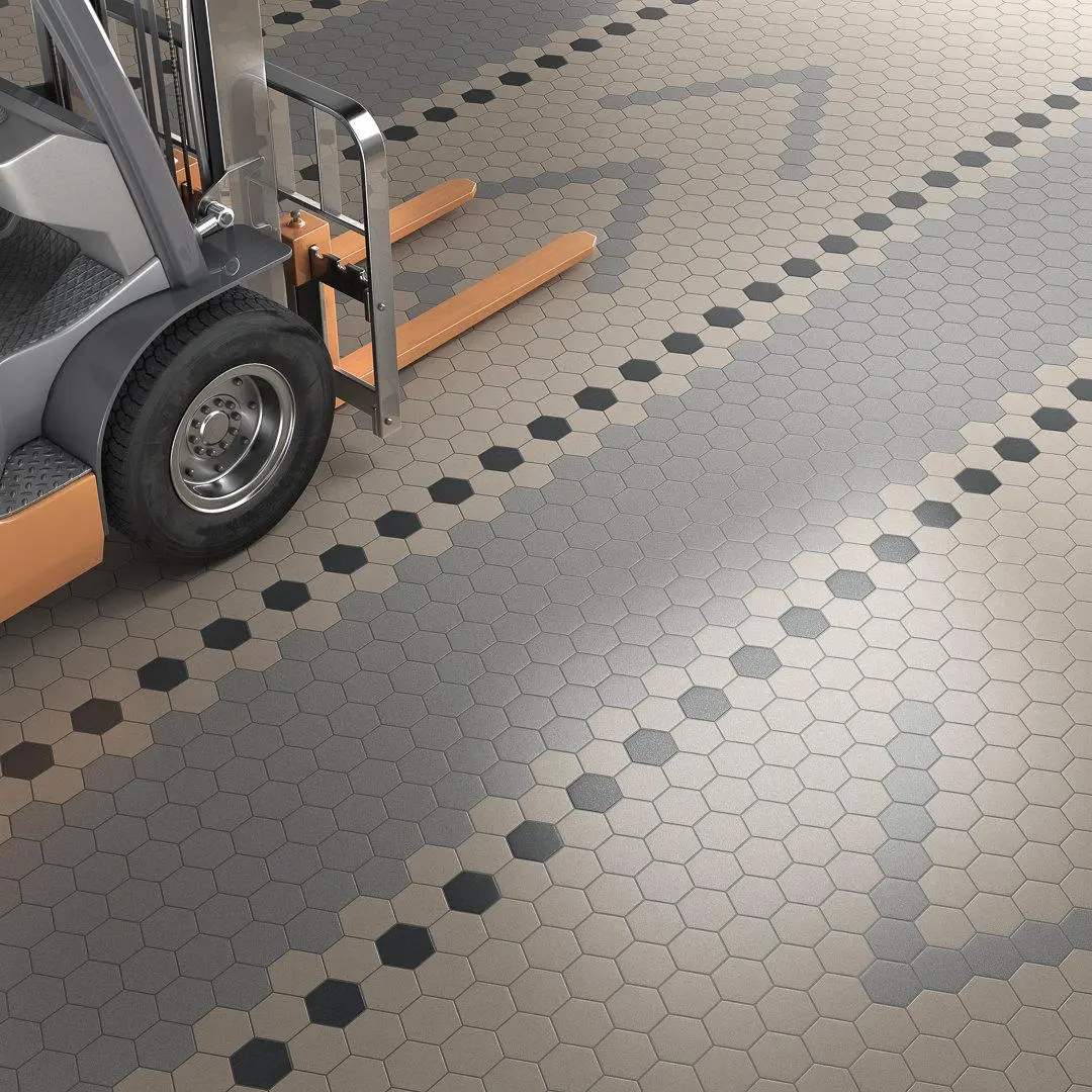 Новый взгляд на неглазурованный керамический гранит «соль-перец»: серия «Натива» с увеличенной толщиной 15 миллиметров. Материал, устойчивый к глубокому истиранию, предназначен для использования в помещениях, рассчитанных на интенсивные нагрузки, таких как производственные и торговые площади, технические и рабочие зоны, вокзалы и аэропорты. В серии представлены три цвета и сразу три формата на выбор: мини-шестиугольник, прямоугольник и квадрат 19,8×19,8. Вариативность цвета и формы обеспечивает множество вариантов укладки.