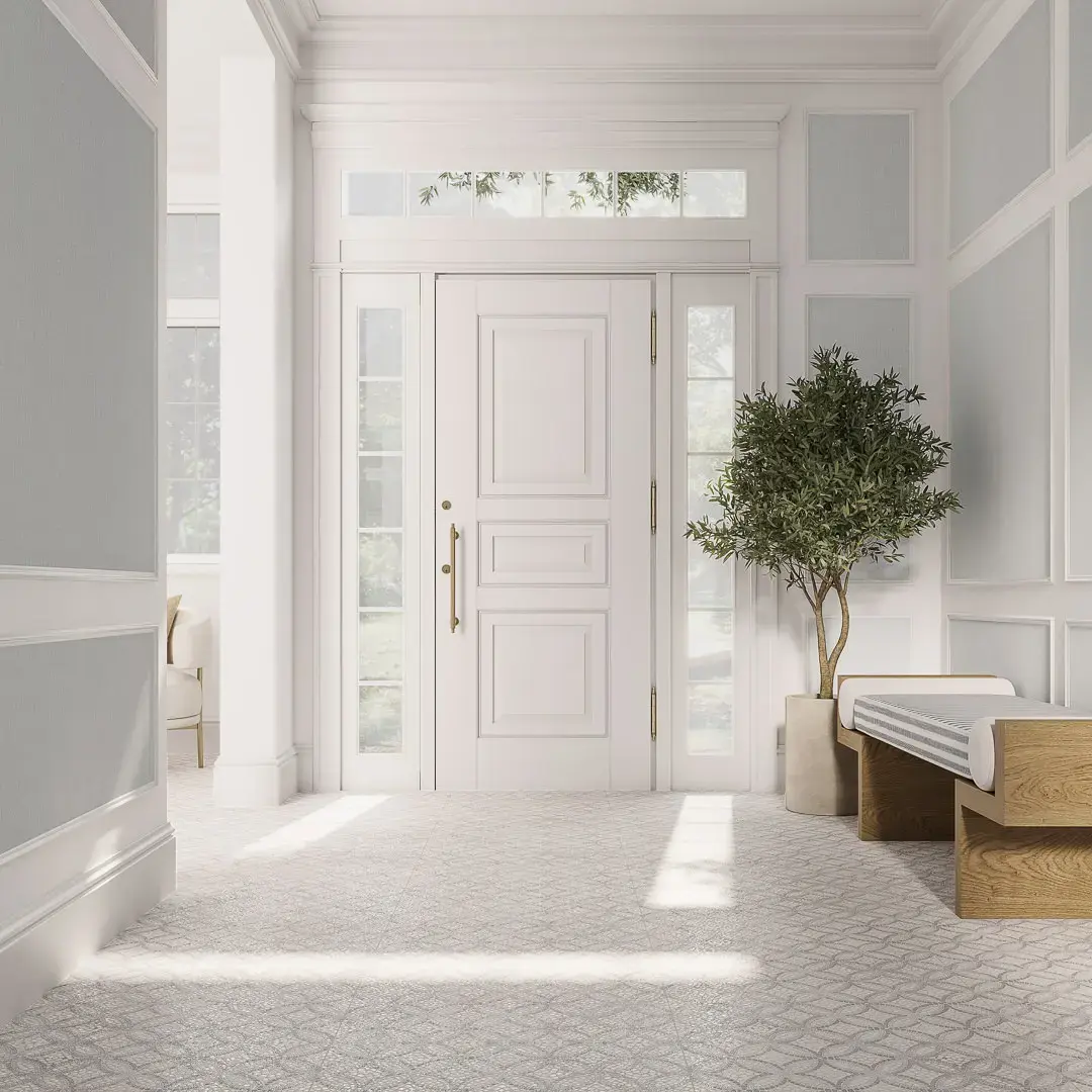 Лаппатированный керамогранит с мозаичным орнаментом легко можно представить себе в интерьере одного из частных поместий французского юга. Плитка обрезного формата 60×60 выполнена с обработкой, которая позволяет воссоздать поверхность с лёгким рельефом и частично отполированными участками.