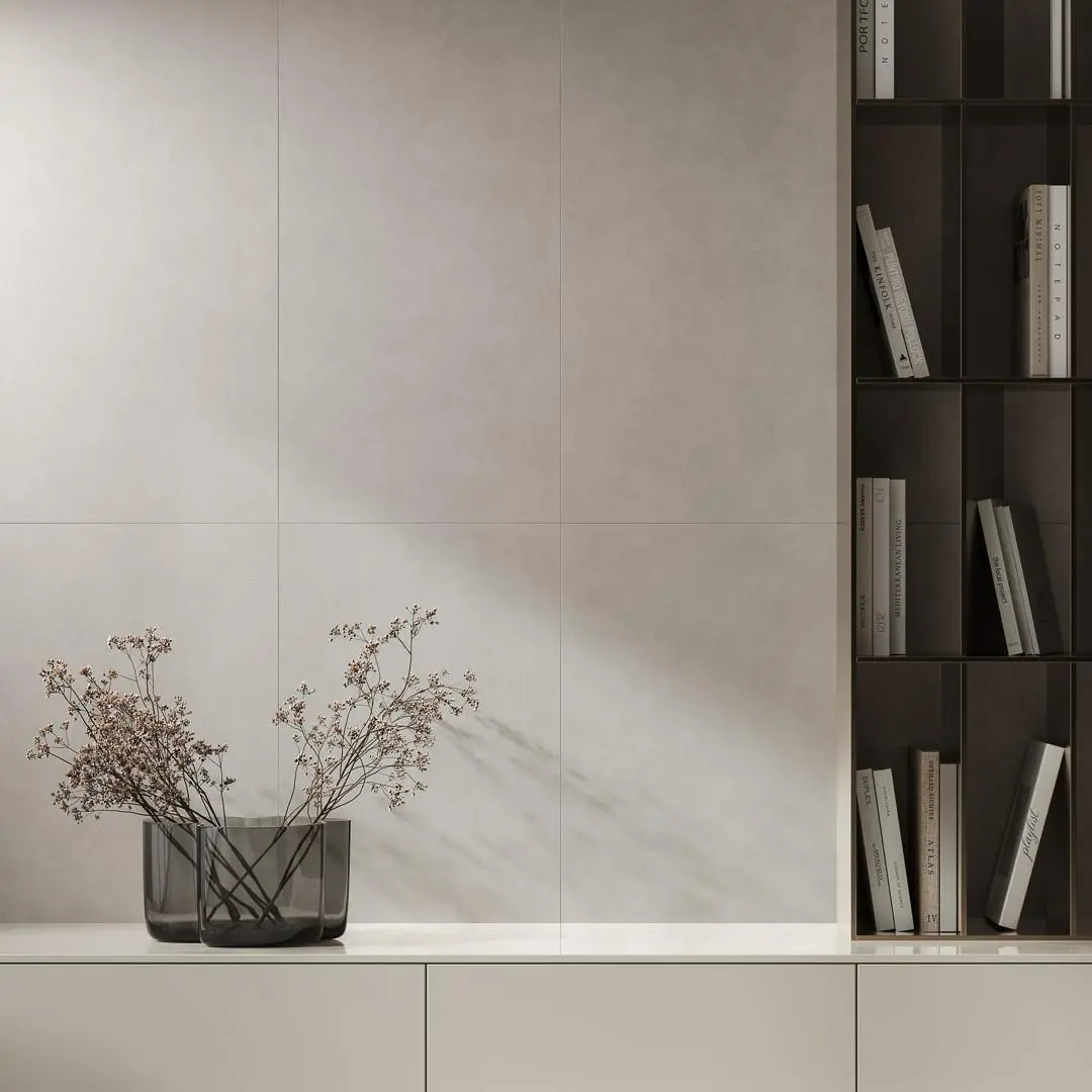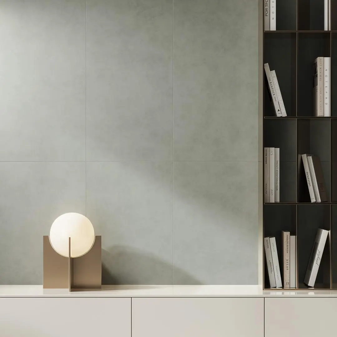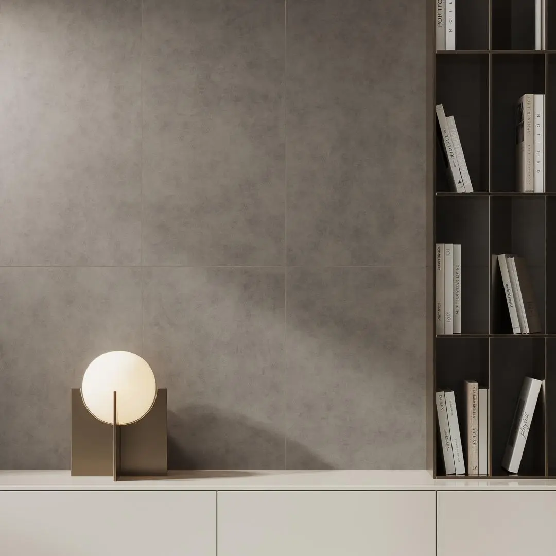В обстановке вместе с матовой настенной плиткой «Таделакт» можно использовать керамогранит «Про Чементо», создавая гармоничные интерьеры в эстетике бетона.