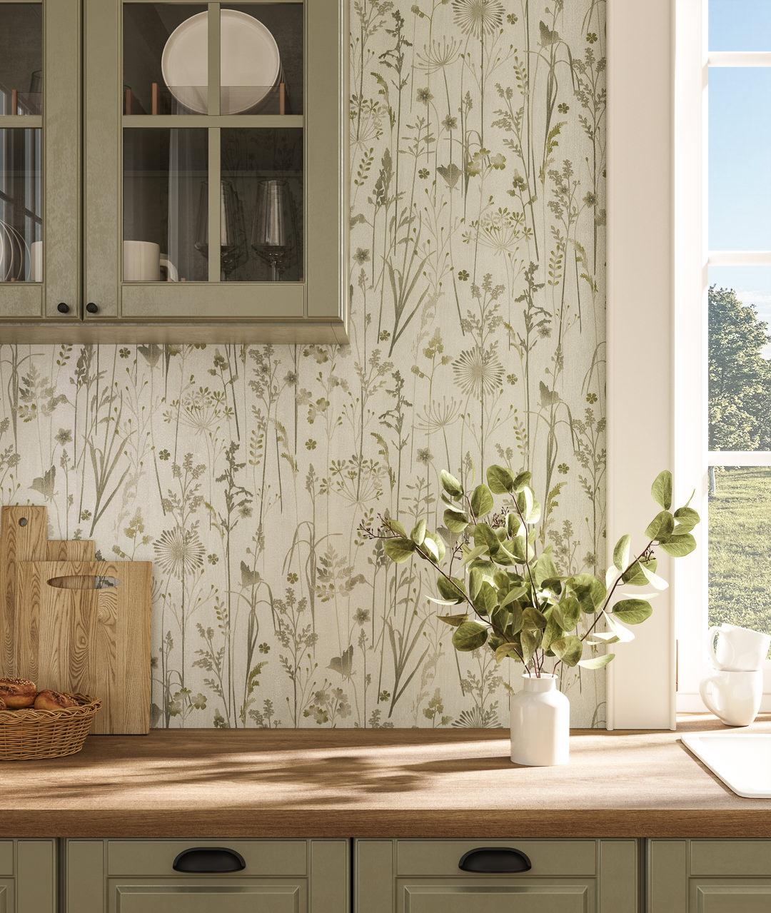 Обои виниловые на флизелиновой основе Платан, мотив, зелёный