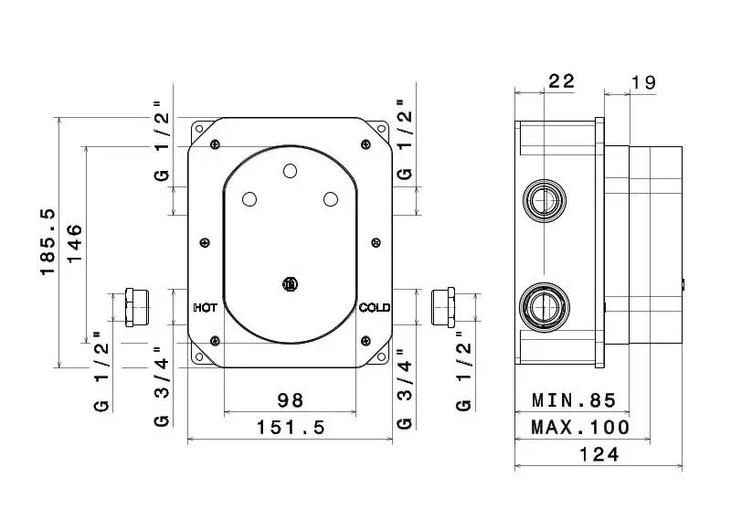 Внутренняя часть для термостатического кнопочного смесителя ETERNA на два потока (70426EXKM) предназначена для встройки в стену, выполнена из латуни.