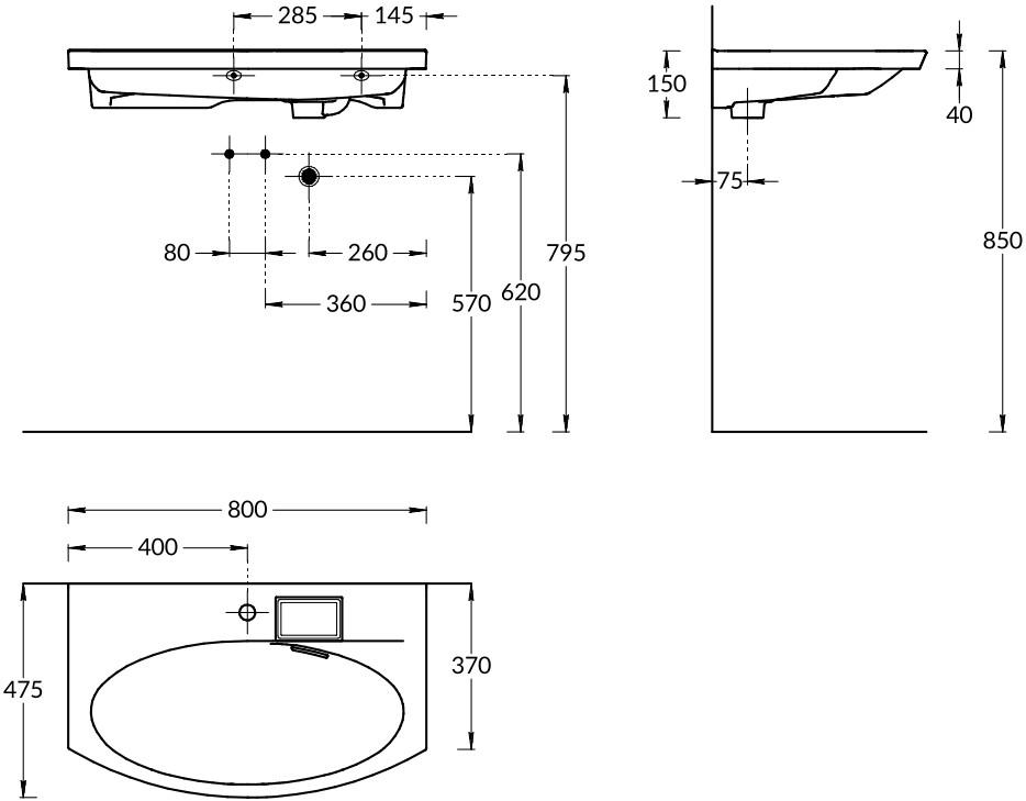 Изогнутая мебельная раковина 80 см без необходимости использования донного клапана, ширина 80 см. Отверстие слив\перелив спрятано в небольшой бокс, закрытый керамической крышкой с бортиком. Чаша раковины расположена в центре. Сочетается с тумбами серии Riva/Рива
