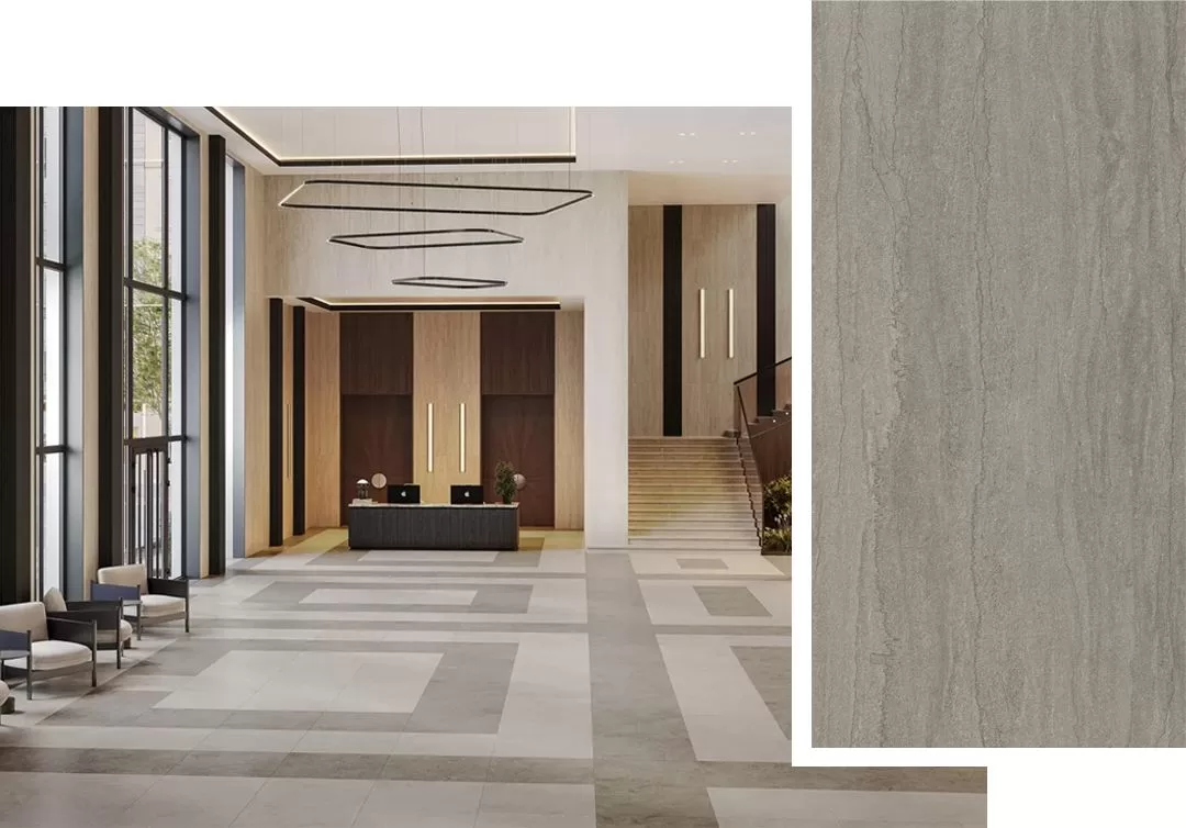 120×240 устойчив к влаге, морозу и солнечному свету: всё это делает такое решение подходящим как для частных интерьеров, так и для коммерческих пространств. Дополнительные параметры износостойкости и противоскольжения, доступные в ряде серий, позволяют применять такие материалы для отделки объектов с повышенными эксплуатационными требованиями.