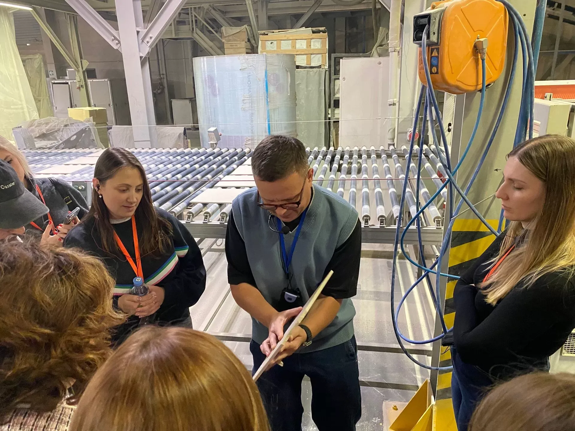 Автоматизация многих важных процессов и то, как проходят лабораторные испытания керамогранита, произвели на гостей большое впечатление. Павел показал все процессы рождения керамических материалов KERAMA MARAZZI — он глинозапасникоа до упаковки коробок.