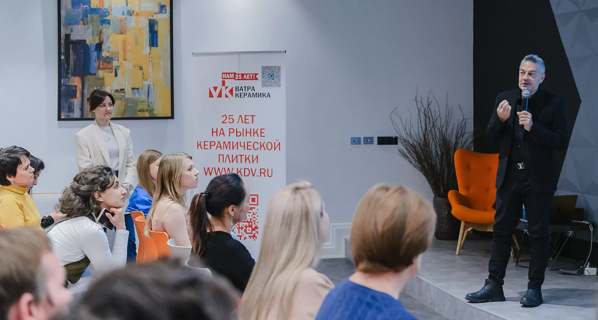 Дизайнеры, архитекторы и декораторы Москвы посетили встречу с итальянским дизайнером, директором по развитию направления «Ванная комната» KERAMA MARAZZI Массимо Санти и менеджером по продукции Кариной Бараевой. Мероприятие организовало коммуникационное агентство «АрхДиалог».