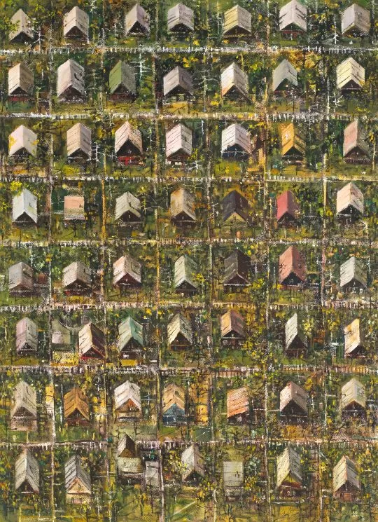 Его ментальные, свободные отзакономерности пространства вбирают всебя событие фрагментарно, под стать процессу припоминания. Пересказать сюжеты его работ невозможно, как невозможно передать вполном объёме возникающие иуходящие вворонку времени фантазии, страхи ипрочие обрывки сознания иподсознания. Время вработах Батынкова сжимается водну точку, его произведения лишены привычного нарратива; событие видится целиком, одномоментно, аповествование уходит отлинейной последовательности. Батынков неозадачивает себя условностями какой-либо перспективы, организацией планов ипрочими формальностями, его искусство давно обрело свою собственную логику ипринцип существования. «Вид сверху» это неместоположение автора, живописующего реальность, это попытка взглянуть нанеё сверху сторонним, нонебезучастным наблюдателем.