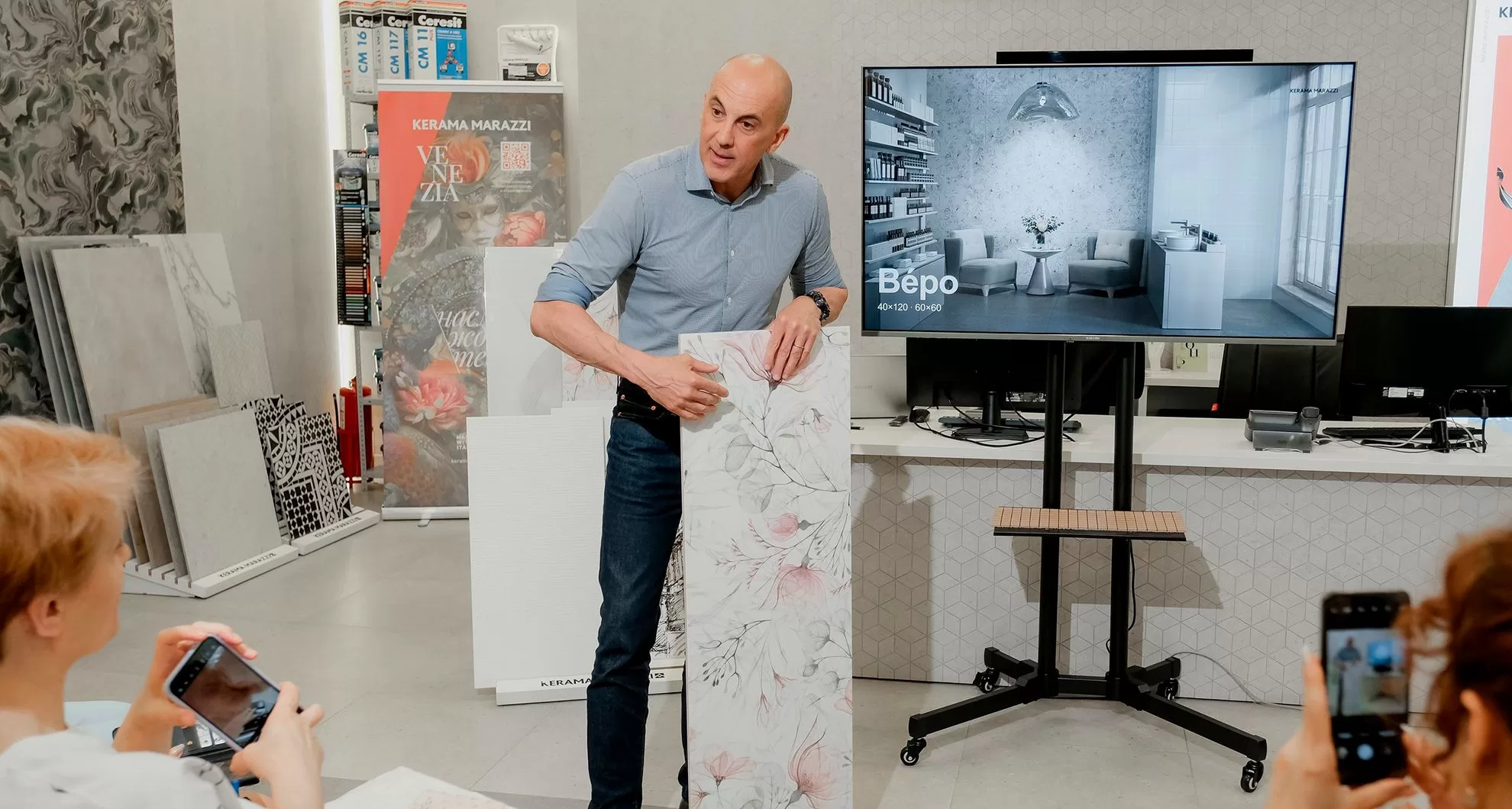 В выступлении спикеров были раскрыты разнообразные нюансы того, что влияет на создание новых серий, как красота города-вдохновителя отражается в облике керамических материалов, сантехники, мебели для ванных комнат и фирменных обоев. Помимо эстетики и предыстории, архитекторы и дизайнеры узнали о новых форматах и структурах коллекции, могли задать вопросы и получить подробные ответы.