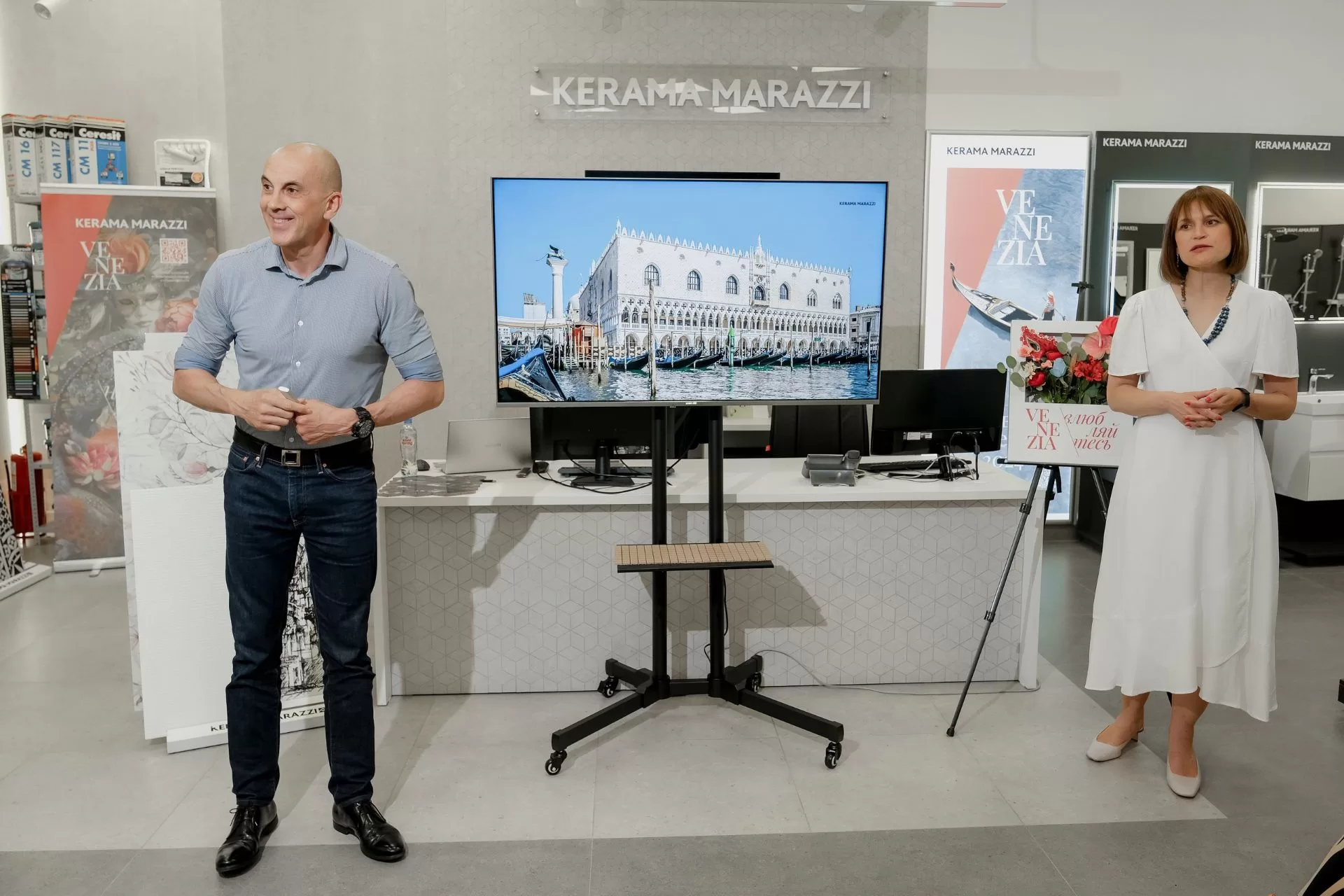 Venezia, в венецианские традиции, историю и культуру этого города совершили дизайнеры и архитекторы Омска вместе с директором по работе с проектами KERAMA MARAZZI Альберто Фавароном и менеджером Натальей Рашковской.