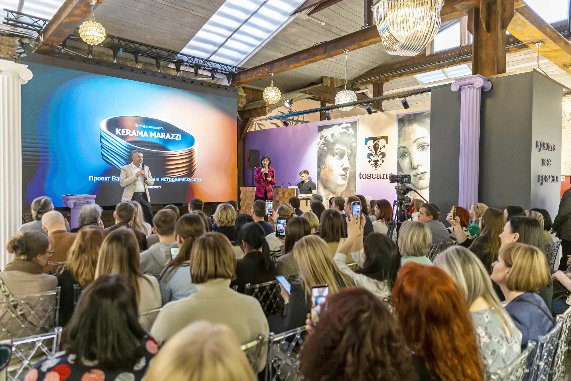 Обучающие презентации для архитекторов и дизайнеров, посвящённые современным трендам в дизайне интерьеров, провели Сергей Трегубов, дизайнер интерьеров, основатель дизайн-студии Iroom Design, блогер, экс-ведущий программы «Школа ремонта» на канале ТНТ, и Массимо Санти, дизайнер, директор направления «Ванная комната» KERAMA MARAZZI. Итальянский дизайнер в своём выступлении перекинул мостик из современности в прошлое, рассказав об истории ванной комнаты в эпоху Возрождения и наглядно продемонстрировал, в каких произведениях великих творцов Тосканы черпал вдохновение при создании новой коллекции сантехники. Также Массимо выступил с этой темой перед делегатами Дизайн-конференции, которая с успехом прошла 1-2 апреля в Культурном центре ЗИЛ в Москве. Конференцию посетили 1200 дизайнеров интерьеров со всех регионов РФ.