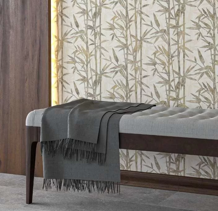 Примерить на стены текстиль с растительными принтами позволила керамическая серия «Бамбу» – а теперь и обои «Бамбук» (Bamboo). Это обои, на которые приятно смотреть – а еще приятнее к ним прикасаться. Дизайн вдохновлен одной из коллекций от-кутюр Джорджо Армани. Мотив и фон выглядят стильно благодаря мелкой текстуре, точно воспроизводящей ткань.