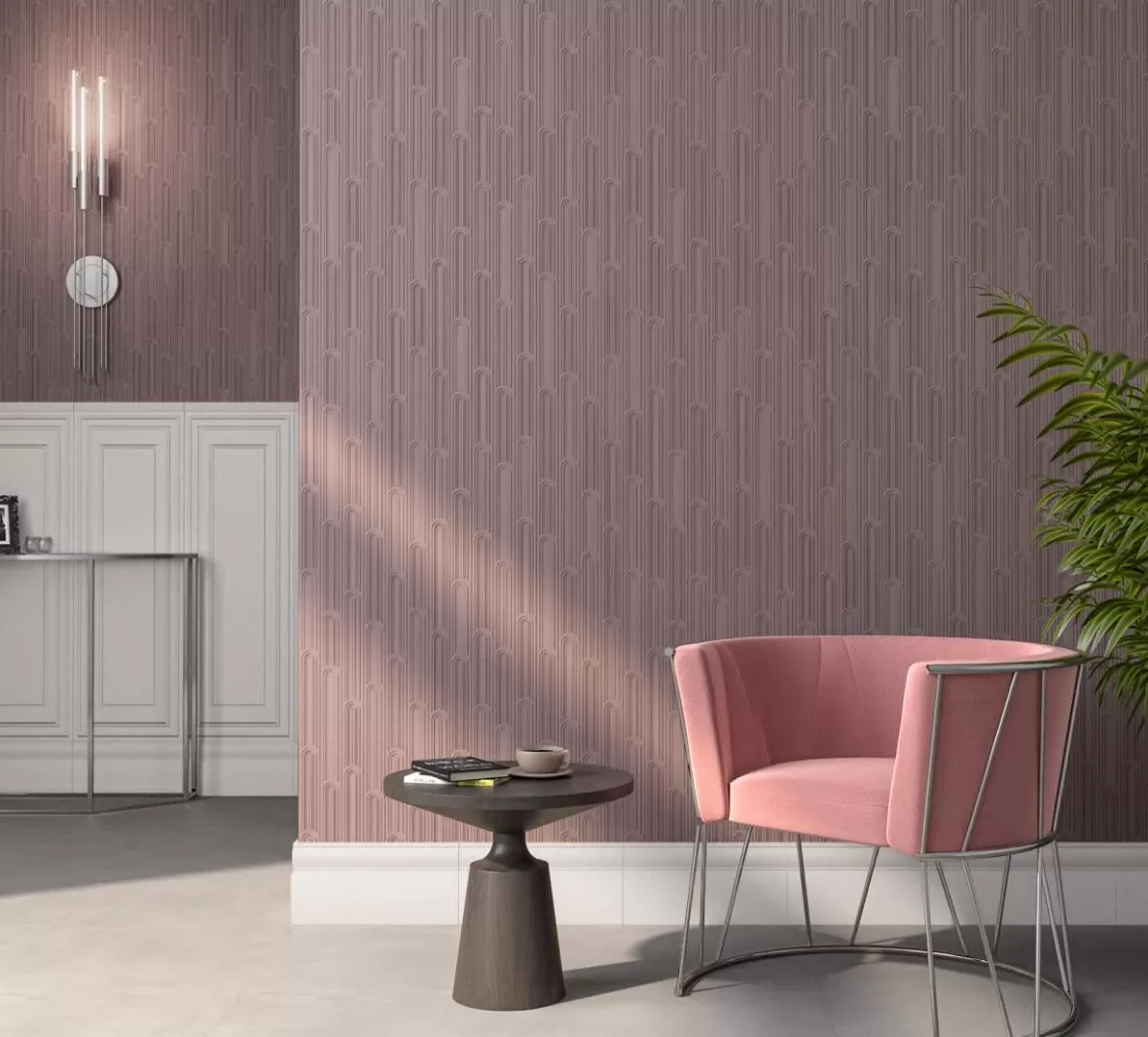 Арка – истинно миланский символ, который не раз возникает в керамической коллекции MILANO. В обоях серии «Арки» эта форма объединяет в один модный паттерн два популярных элемента: вертикальные полоски и дуги. Фон выполнен в комплементарной цветовой гамме и имеет текстильную текстуру.