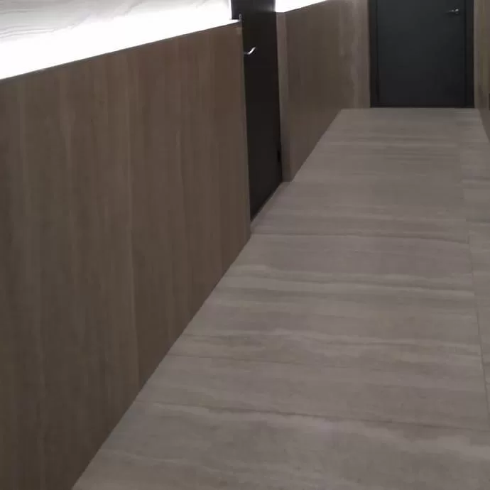 В доме 11.3 в ЖК "ELEVEN" в холле и в общественных коридорах на полу использован Керамический гранит KERAMA MARAZZI Риальто 60х120 см, Про Дабл 30х60 см и Про Матрикс 60х60 см. На лестницах Матрикс 30х30 см. В отделке пола в санузлах используется Керамический гранит KERAMA MARAZZI Урбан 30х30 см.