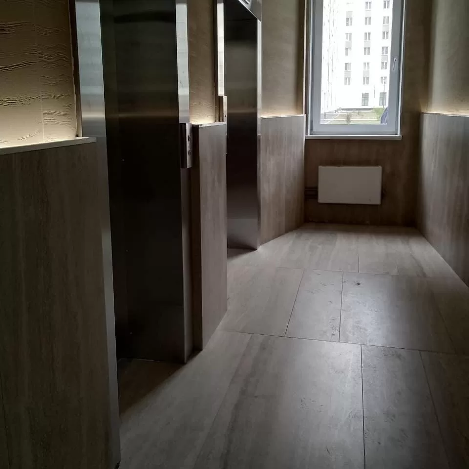 В сданном доме 26.7.5 в ЖК "БЛИЗКИЙ" в холле и в общественном коридоре на 1 этаже на полу и стенах использован Керамический гранит KERAMA MARAZZI Риальто 60х120 см. В отделке пола в санузлах используется Керамический гранит KERAMA MARAZZI Урбан 30х30 см.