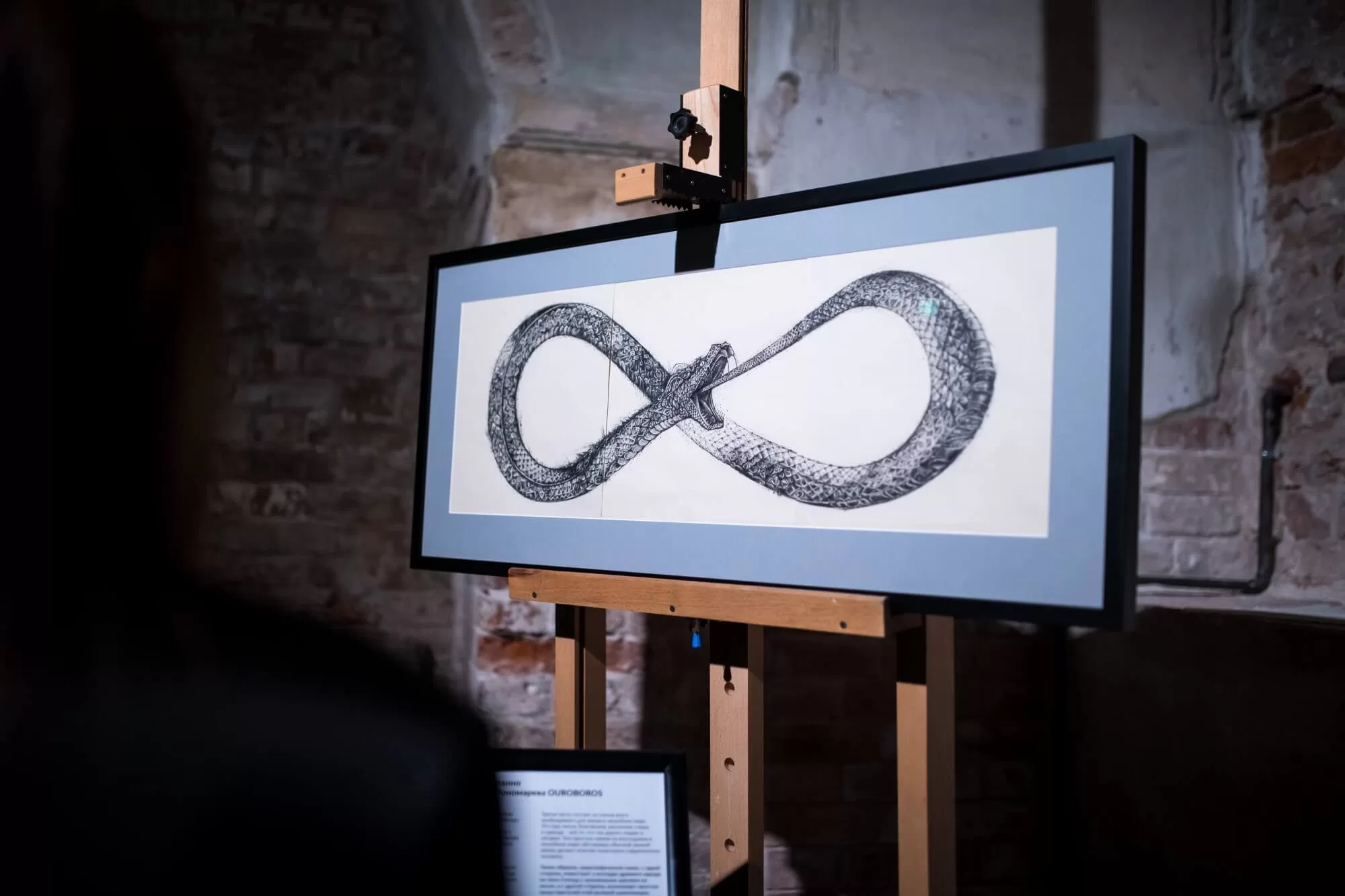 В конце прошлого года в Каире художник, многократный участник Венецианской биеннале и организатор первой Биеннале современного искусства в Антарктиде Александр Пономарев при поддержке компаний KERAMA MARAZZI и Surface Lab, а также российской галереи Surface Lab Art представил 16-метровую инсталляцию «Уроборос».