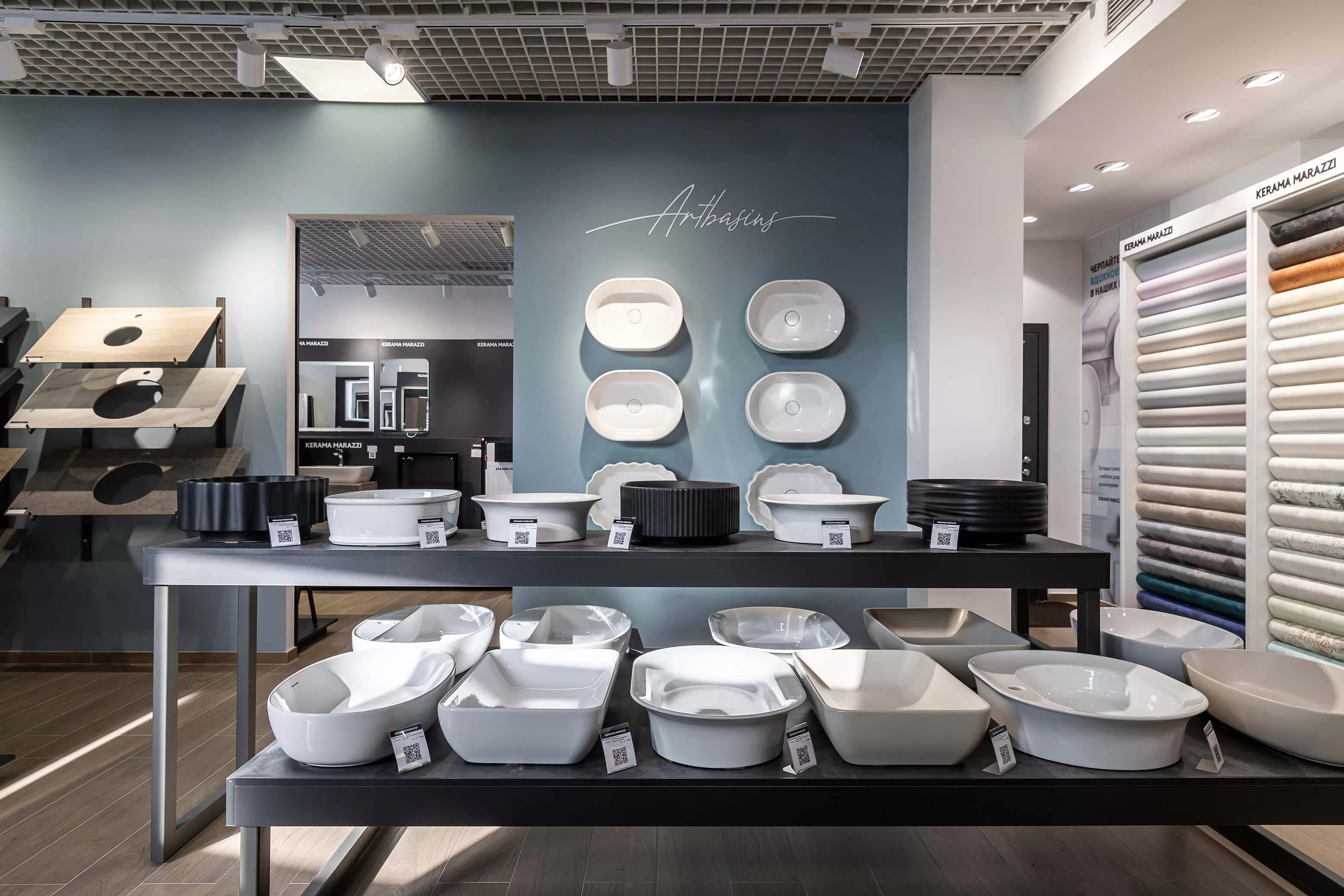 Помимо большого выбора плитки и керамического гранита, в магазине теперь представлен весь ассортимент сантехники и мебели для ванной комнаты, а также всё разнообразие душевых ограждений VETRO. Приобрести раковину, тумбу, пенал, смеситель, унитаз, биде, душевое ограждение, душевой лоток, аксессуары и комплектующие в одном месте? Это возможно.