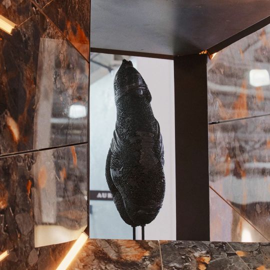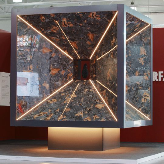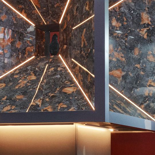 Производство керамики подчиняется той же логике. Порода разрушается, измельчается, подвергается экстремальному нагреву, приобретает текучесть и ускоряется до предельной скорости, чтобы замереть в пределах точно выверенной поверхности. Здесь огонь не средство, он становится принципом — тем же самым, что в природе превращает лаву в камень. Однако это не имитация природных процессов, а воплощение огня, сжатия и движения в языке архитектуры. Материал перестает быть объектом и становится состоянием — точкой, где скорость сменяется тишиной, а движение остаётся присутствием.