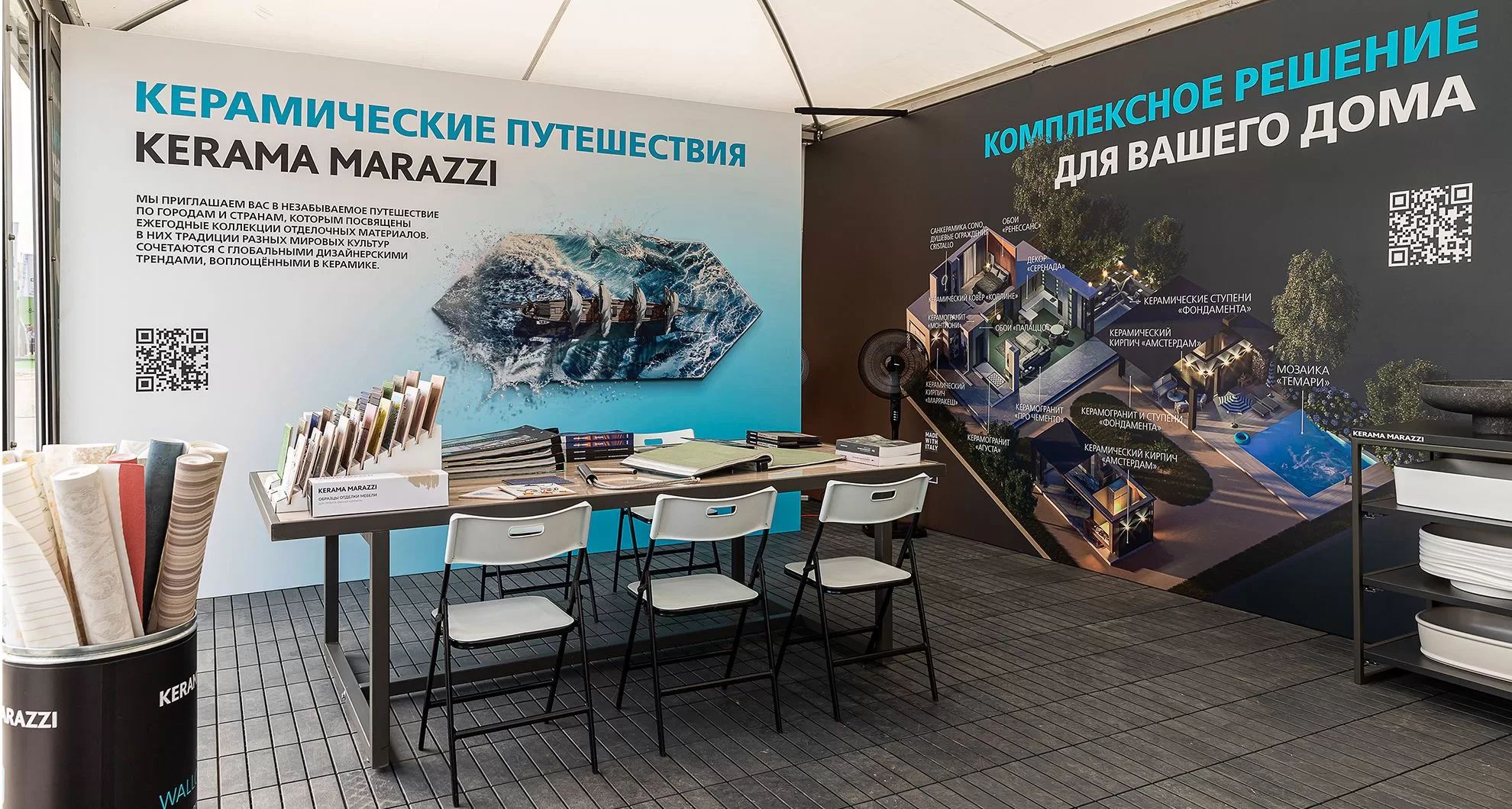 17 июля в живописном коттеджном поселке «Павловы Озера» открылась выставка загородных домов Open Village. KERAMA MARAZZI традиционно принимает участие в этом масштабном выставочном проекте и представляет свою продукцию на стенде.