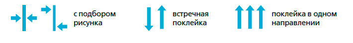 - Обратите внимание на этикетку: там указан способ стыковки — с подбором рисунка, встречная поклейка или в одном направлении.